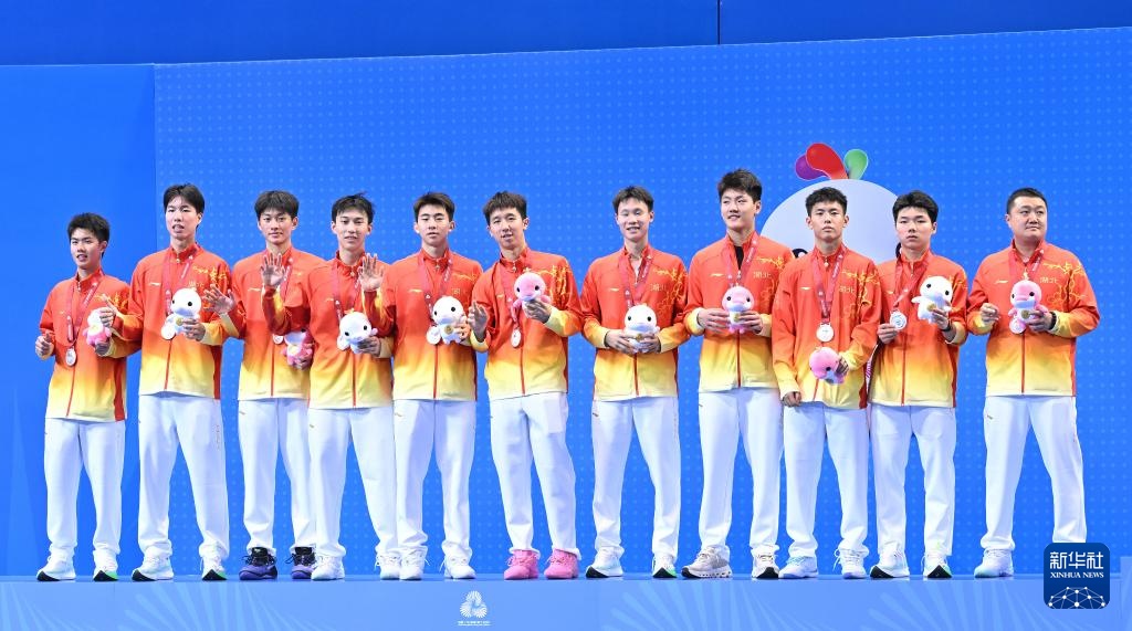 11月13日,获得亚军的湖北队成员在颁奖仪式上合影。