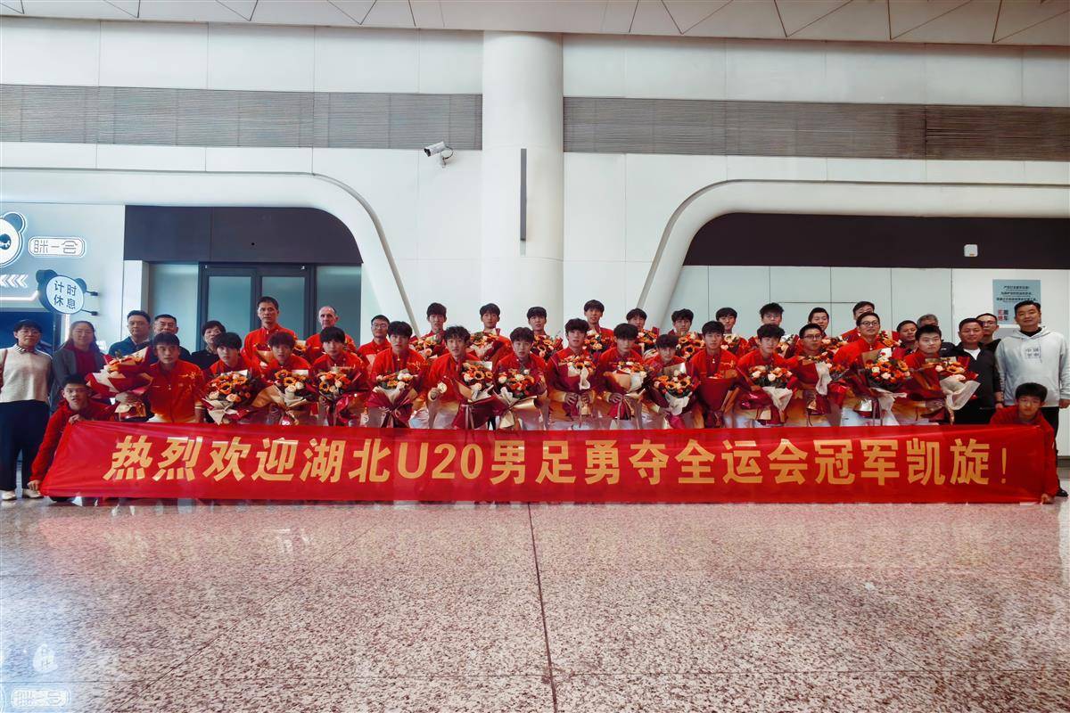 “欢迎冠军回家!”11月13日中午,武汉天河机场接机通道一片欢声笑语。夺得第十五届全运会男足U20冠军的湖北队,带着沉甸甸的金牌与荆楚儿女的骄傲,回来了!