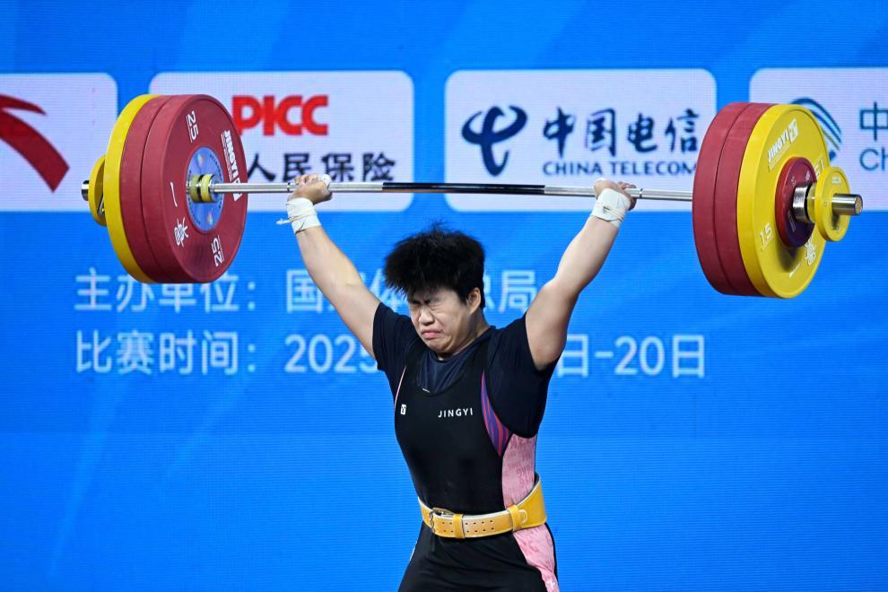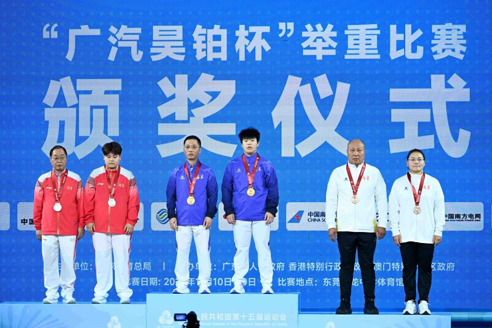 新华社东莞11月13日电(记者杨博毅、黄浩苑)第十五届全国运动会举重比赛13日继续在广东东莞石龙中学体育馆进行。福建队廖桂芳摘得女子76公斤级冠军,其挺举成绩刷新全国纪录并超世界纪录。广东队彭翠婷登顶女子81公斤级比赛。
