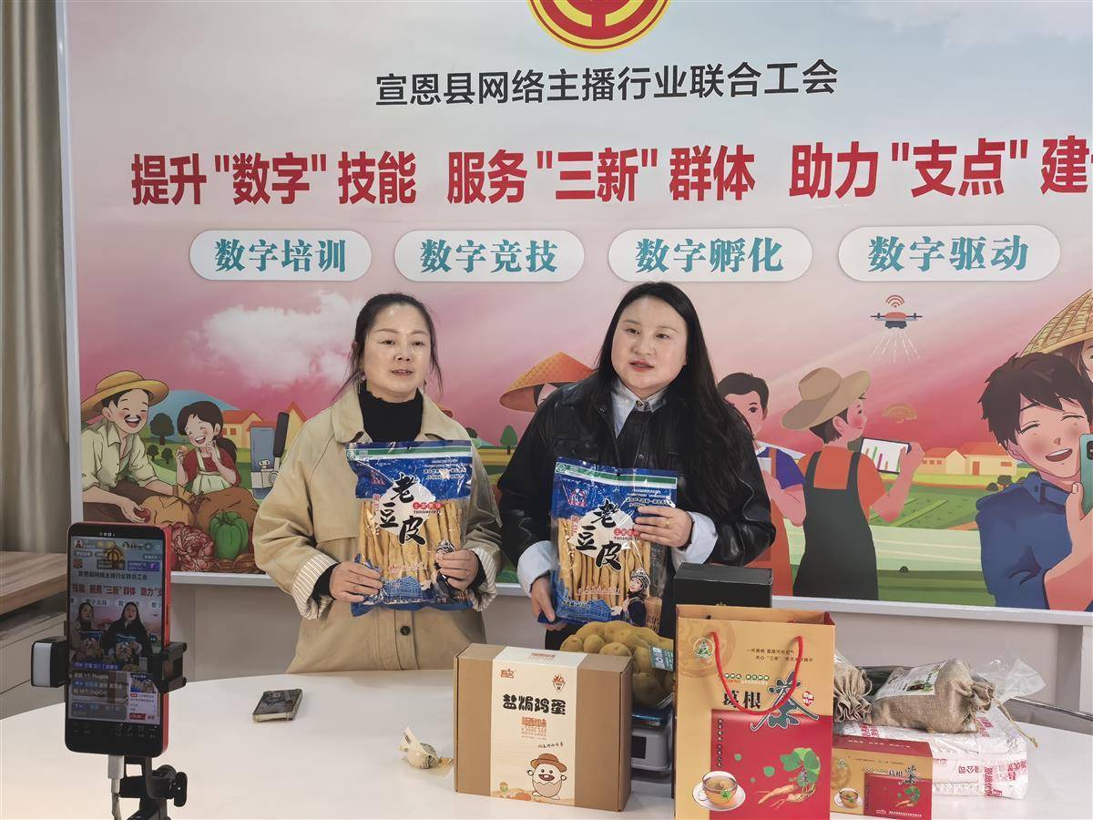 截至目前,宣恩工会“数字驿站”已连续开展多届网络主播技能大赛,举办300余场“电子商务师”“互联网营销师”“百村(企)千名好主播”“农村寄递物流电商”等培训;依托平台孵化企业50多家,带动就业5000多人,培育出上千名农村电商人才、乡村好主播和短视频创客,同时孵化出2家网络媒体工作室、3家线上电商企业、12名年销售额500万以上的带货主播,销售农特产品1.2亿元。