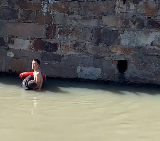 顺丰小哥下河救人(视频截图)