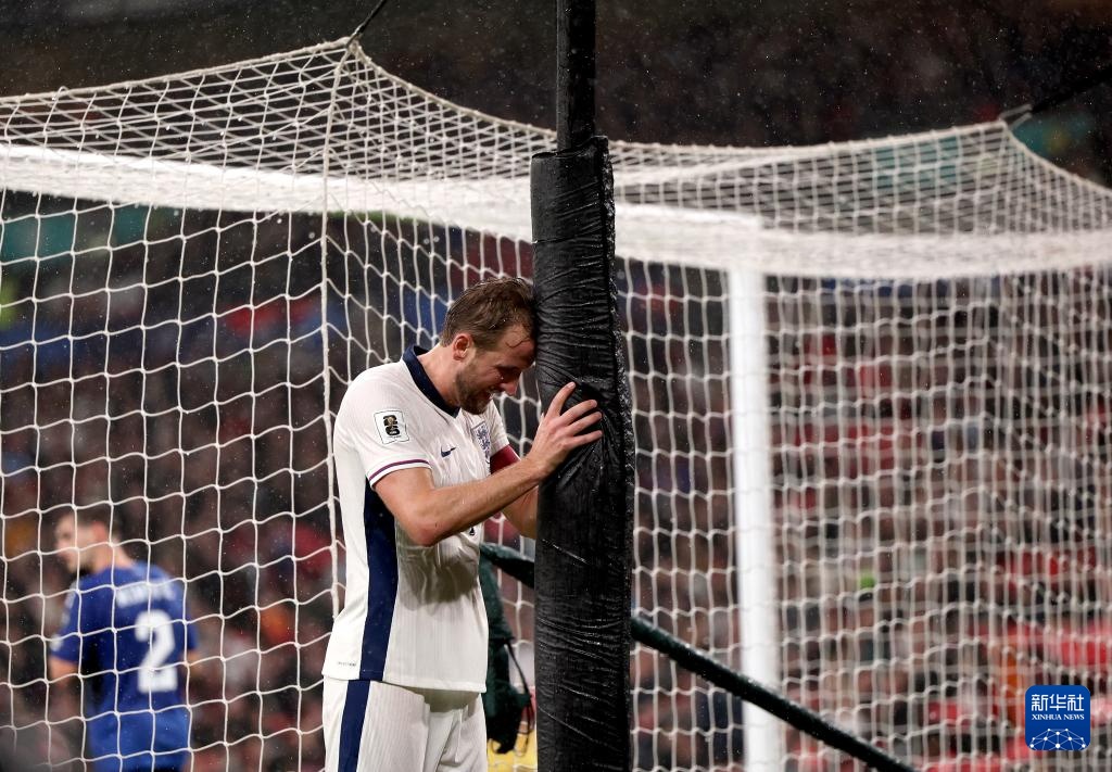 11月13日,英格兰队球员凯恩在错失进球机会后。