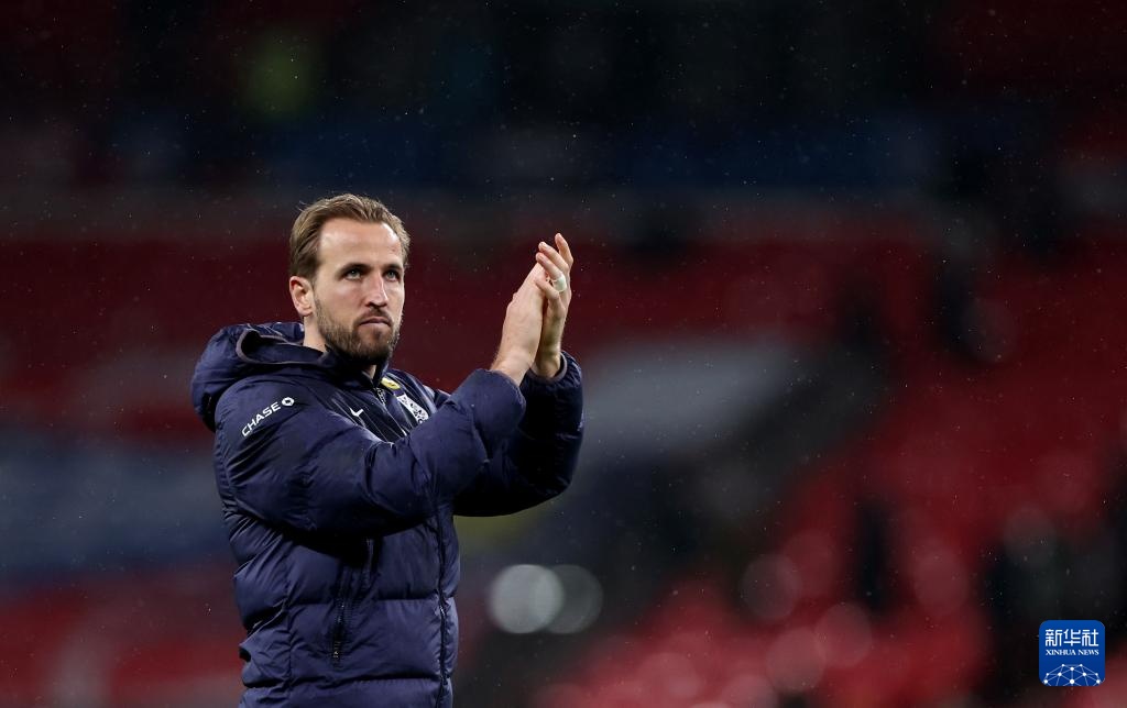 11月13日,英格兰队球员凯恩在赛后向球迷致意。