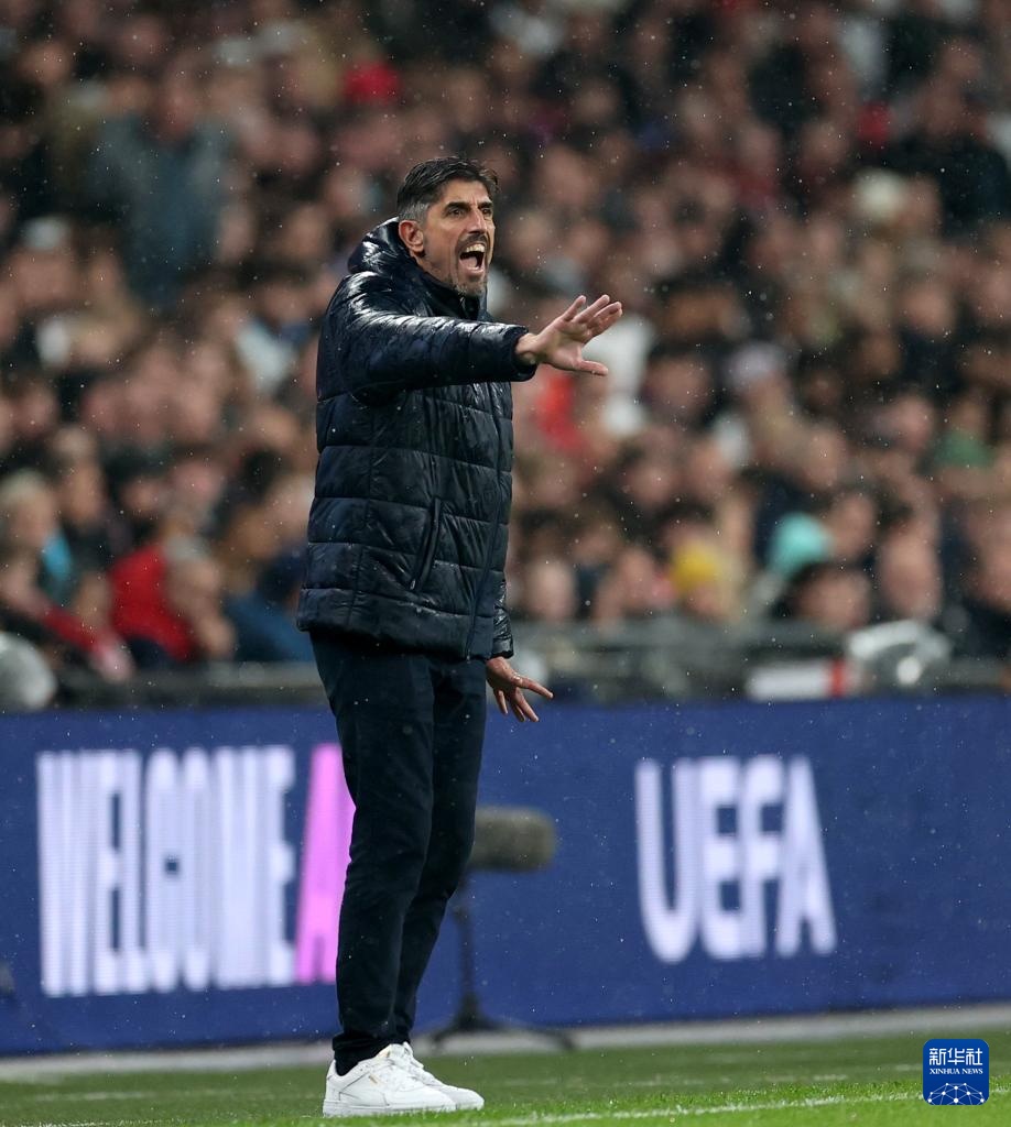 11月13日,英格兰队主教练图赫尔在场边指挥。