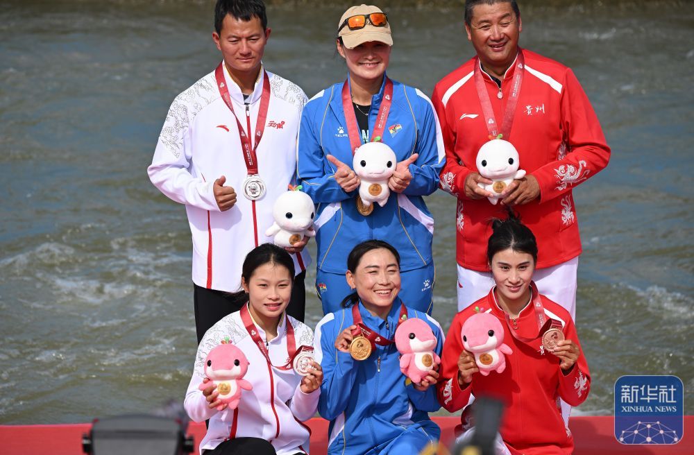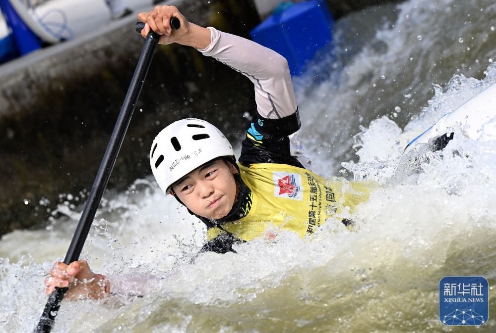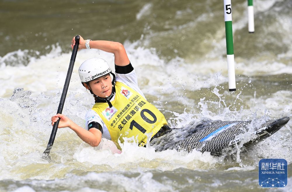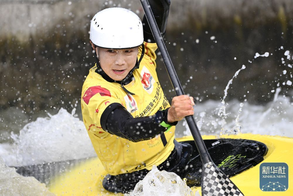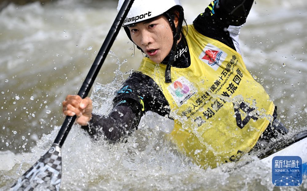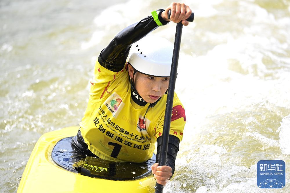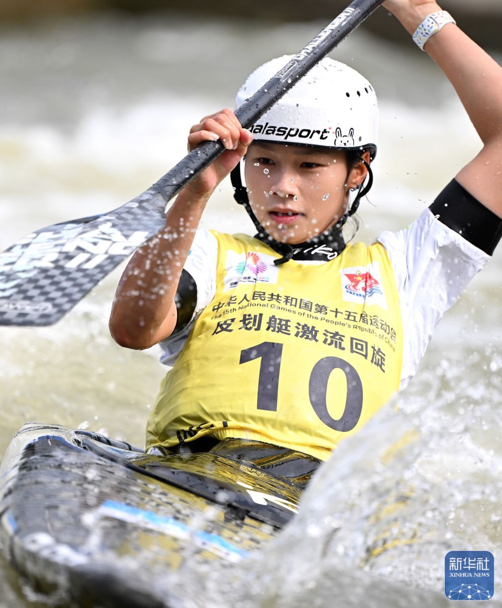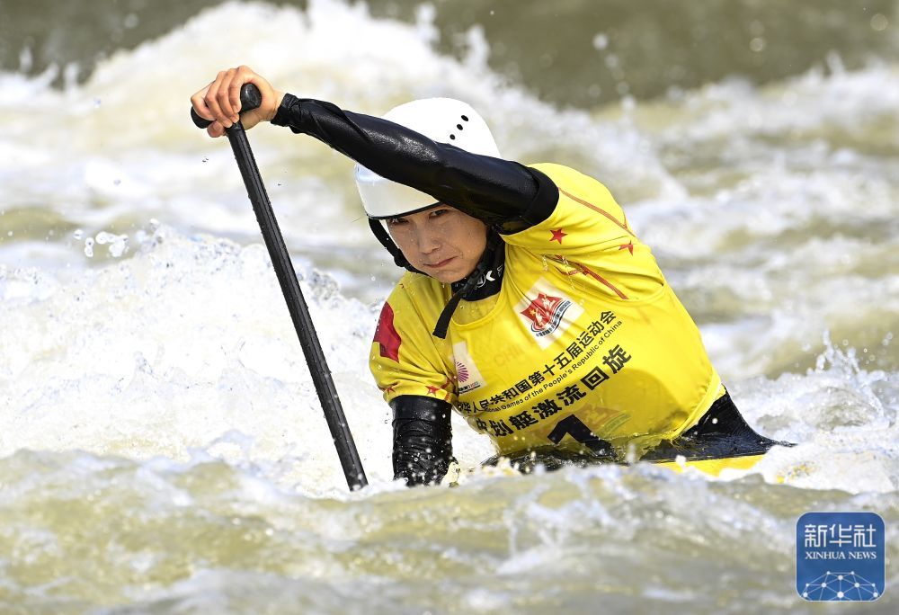 11月14日,在广州举行的第十五届全国运动会皮划艇激流回旋项目女子单人划艇决赛中,辽宁队选手陈诗获得冠军,云南队选手杨婷和贵州队选手黄娟分获亚军和季军。