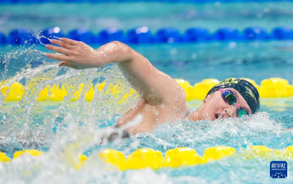 11月14日,浙江队第三棒选手吴卿风在女子4x200米自由泳接力预赛中。浙江队晋级决赛。