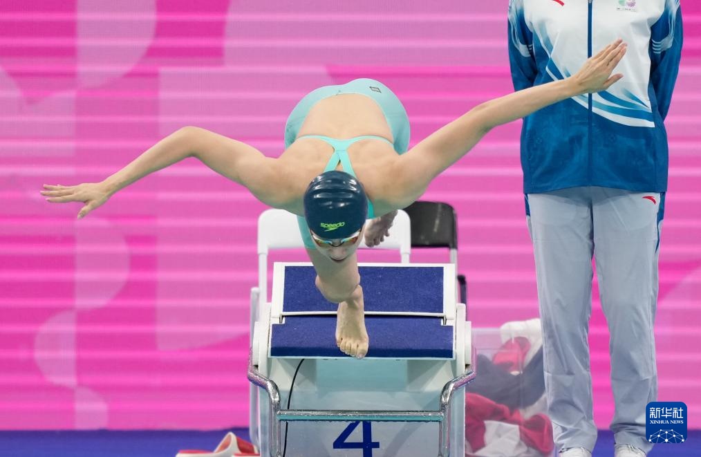 11月14日,香港队选手何诗蓓在女子100米自由泳预赛中。她以预赛第一名的成绩晋级半决赛。