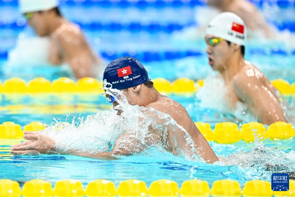 11月14日,香港队选手麦世霆(前)在男子200米蛙泳预赛中。他晋级半决赛。
