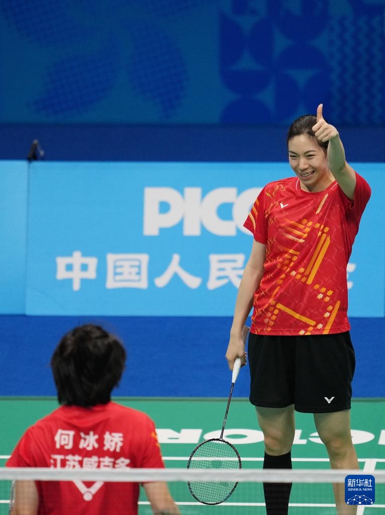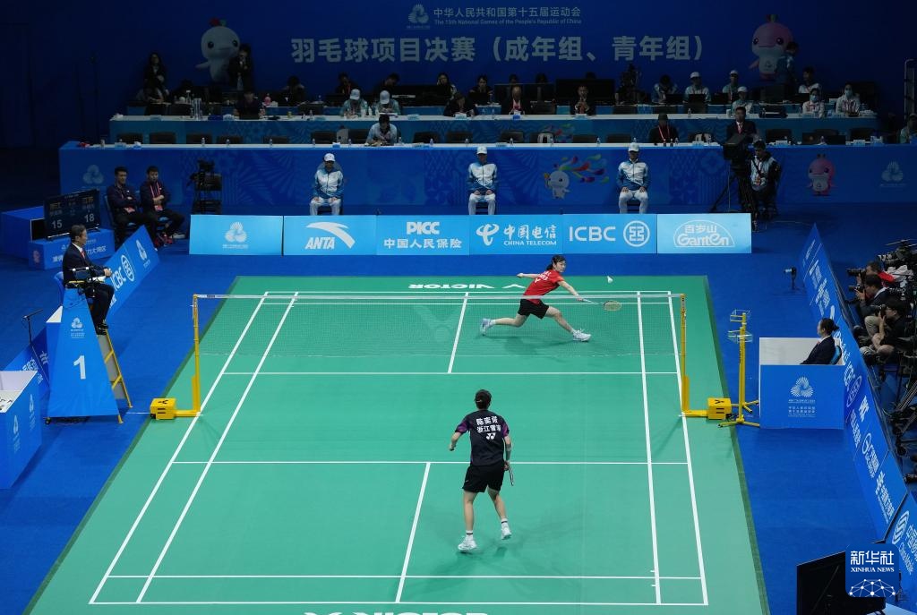 当日,在深圳举行的第十五届全国运动会羽毛球女子团体决赛中,江苏队对阵浙江队。