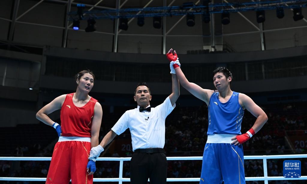 当日,在广东深圳进行的第十五届全国运动会拳击女子75公斤级决赛中,浙江队选手叶金战胜黑龙江队选手汪丽娜,夺得冠军。