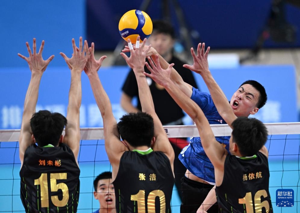 当日,在广州举行的第十五届全国运动会排球男子18岁以下组1/4交叉赛中,上海队3比0战胜山东队。