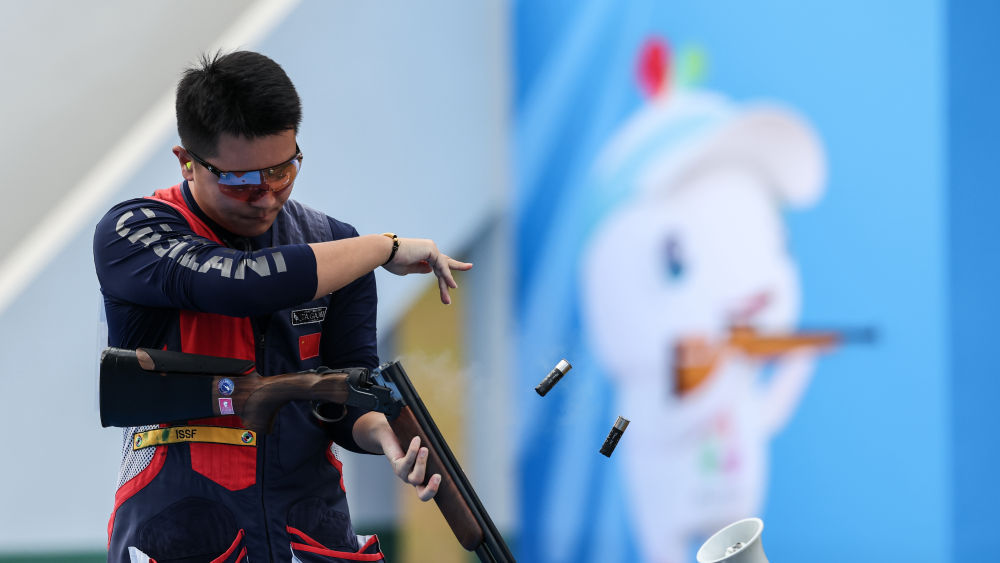 男子飞碟双向比赛中,两名江苏队选手张煜坤、杨蒋携手进入最后10枪的争夺。首次参加全运会的张煜坤稳住心态,以56中的成绩笑到最后。杨蒋和福建队选手吴亮亮分获银牌和铜牌。