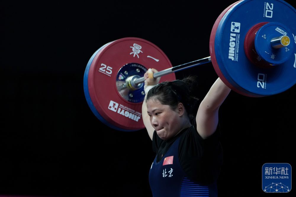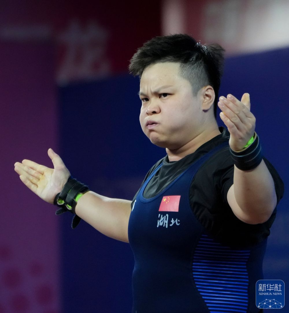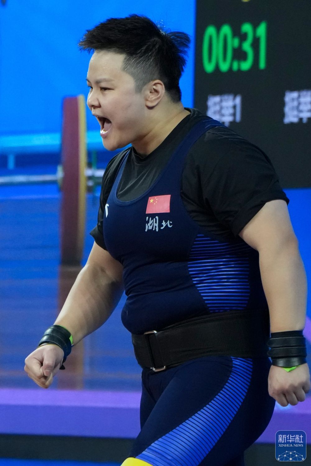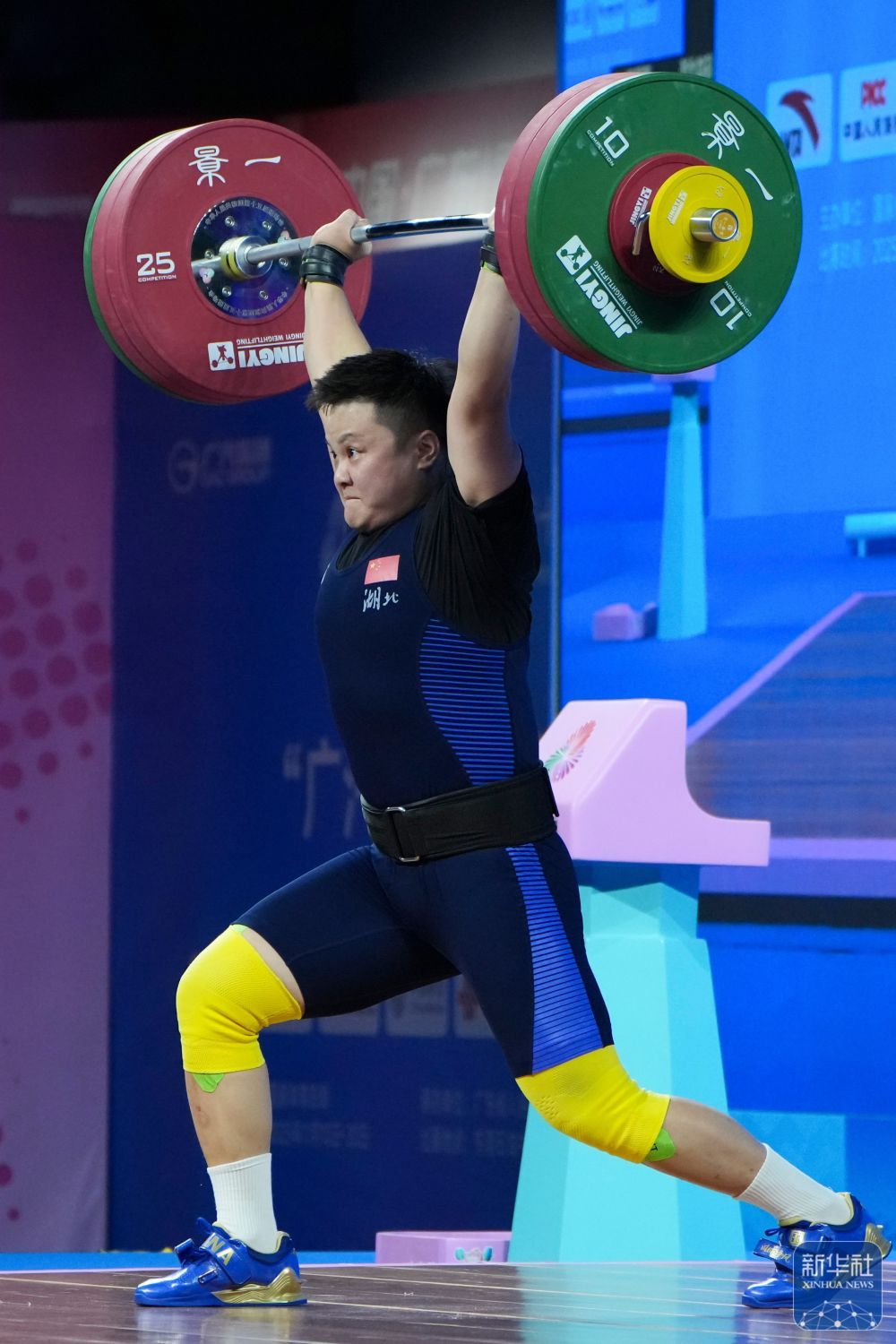 11月14日,第十五届全国运动会举重女子87公斤级决赛在东莞举行。湖北队选手汪周雨夺得冠军。