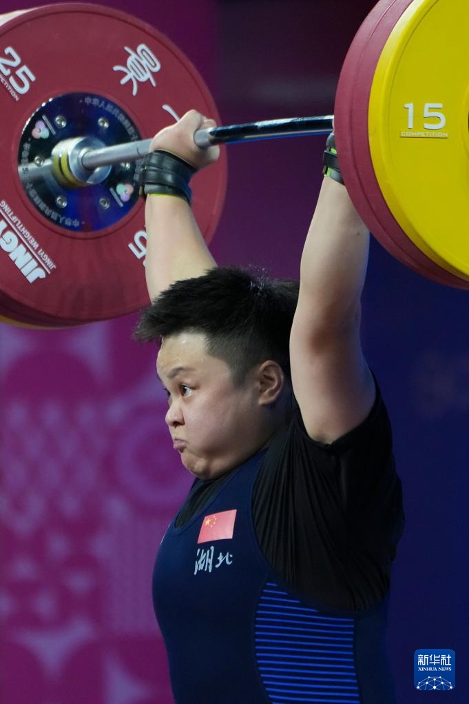 11月14日,湖北队选手汪周雨在挺举比赛中。最终,她夺得冠军。