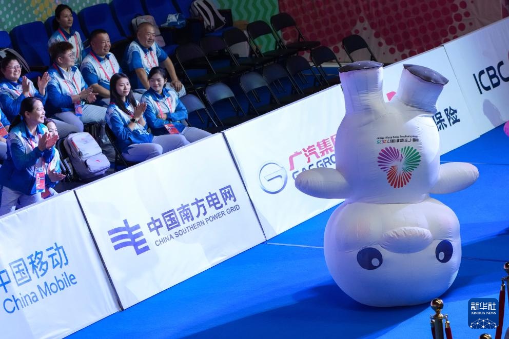 11月14日,吉祥物“喜洋洋”在比赛前表演。