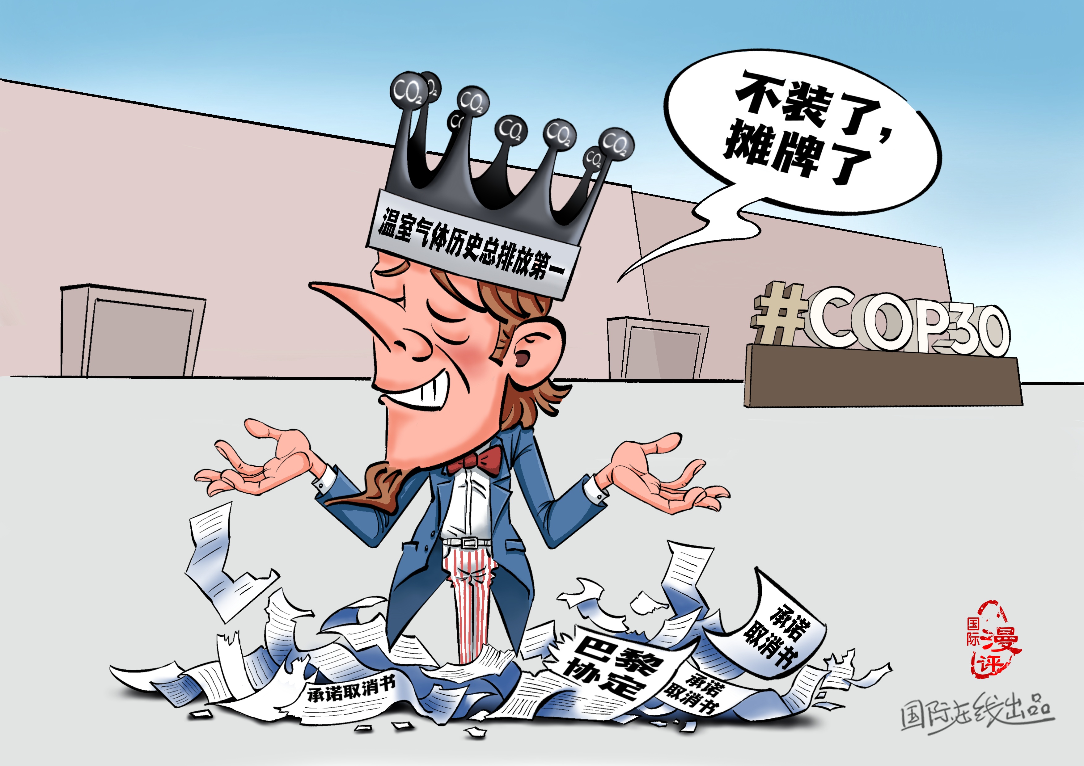 《联合国气候变化框架公约》第三十次缔约方会议(COP30)正在巴西举行。美国政府未派出高级官员参会,并取消多项气候承诺。对此,《华盛顿邮报》刊文称,作为历史上最大的温室气体排放国,美国正在阻挠应对气候变化的国际合作与努力。