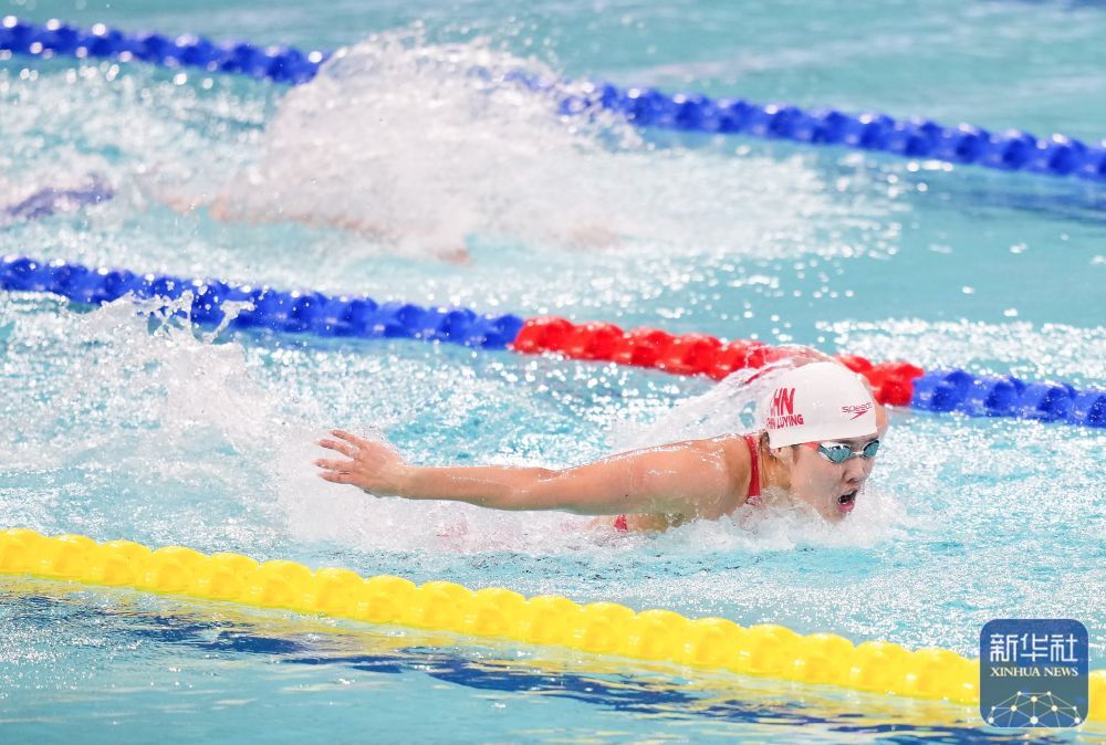 11月14日,第十五届全国运动会游泳女子200米蝶泳决赛在广东省深圳市举行。福建队选手陈露颖夺冠。