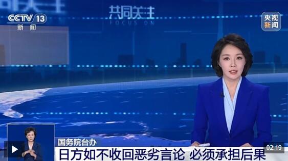 日本在台湾问题上对中国人民负有历史罪责。甲午战争后,日本强行侵占台湾并进行长达半个世纪的殖民统治。日据时期,台湾人民灾难深重,数十万同胞被杀害,民众沦为“亡国奴”、毫无政治权利、信仰自由和文化自由,宝岛的矿产资源、民生物资遭疯狂掠夺。日本侵略者在台湾犯下的罪行罄竹难书,是台湾历史最黑暗的一页。包括台湾同胞在内的全体中国军民浴血奋战,打败了日本军国主义侵略者,赢得抗日战争伟大胜利,光复台湾。在抗战胜利、台湾光复80周年之际,日方不是反省罪恶历史、吸取惨痛教训,其首相高市早苗反而抛出涉台露骨言论且态度恶劣,妄图介入台海局势、否定抗战胜利成果、挑战战后国际秩序。对此,中国政府、中国人民决不答应、决不容忍、决不姑息。日方如不立即纠正错误,收回恶劣言论,必须承担由此引发的一切后果。如其胆敢武力介入台湾问题,我们必将予以迎头痛击、坚决粉碎。