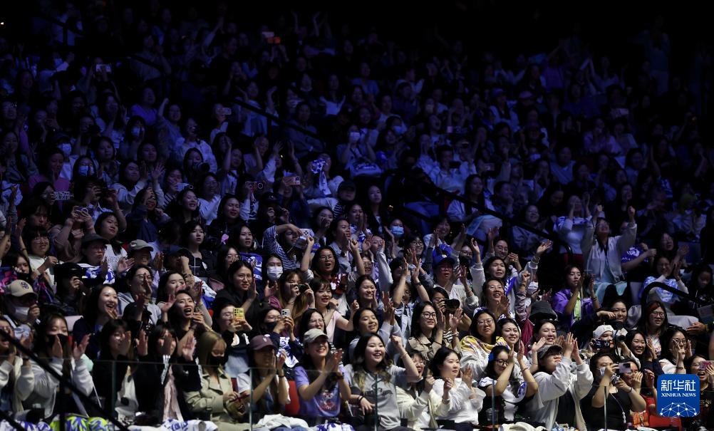 11月14日,广东队选手刘诗雯在比赛后向观众致意。