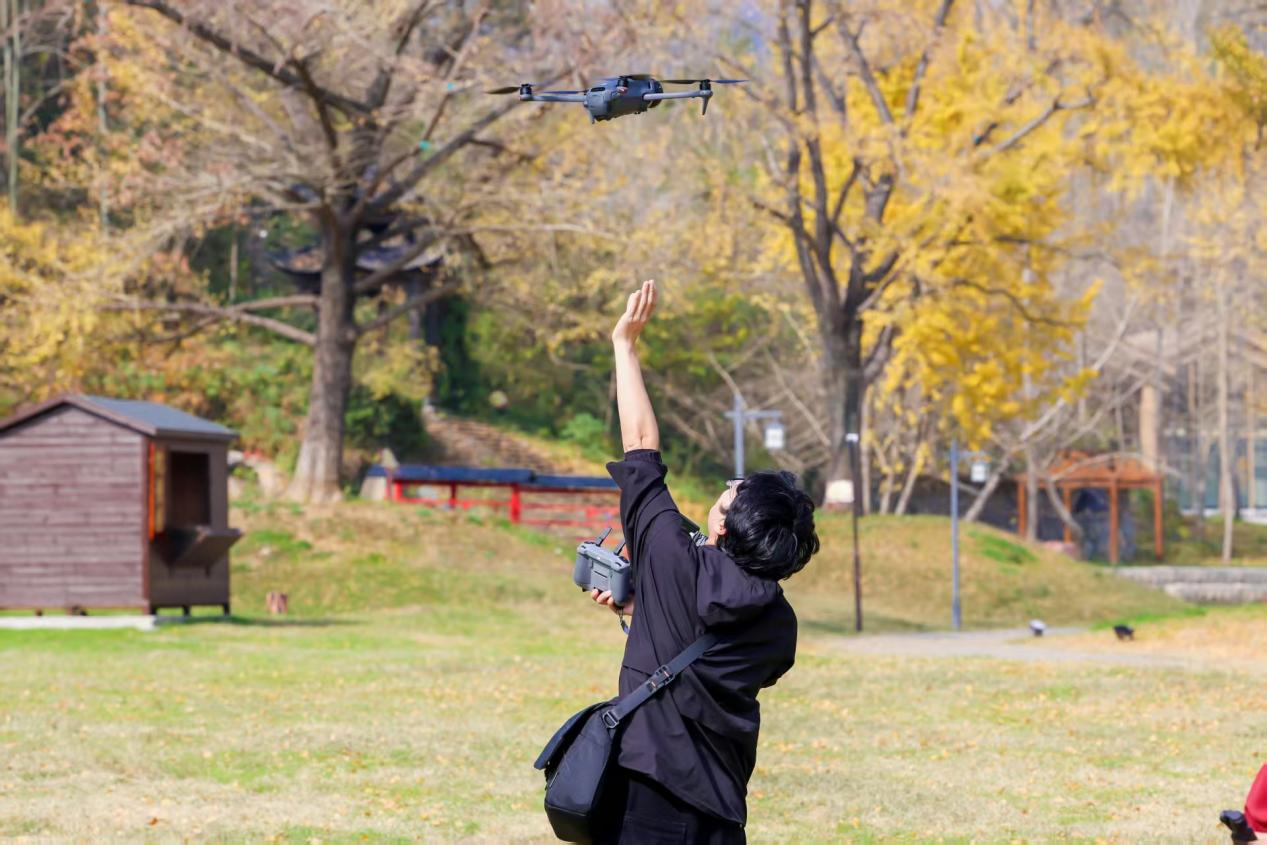 大V们更是被眼前的盛景震撼,纷纷将无人机升向高空。随着无人机缓缓升空,千年古树与蜿蜒步道相映成趣,构成一幅绝美的秋日画卷。大V们专注操控着设备,时而低空掠过枝头捕捉叶片细节,时而拉高视角记录全景壮阔,连午饭都顾不上吃,直呼“美到废寝忘食,每一个镜头都不想浪费”。