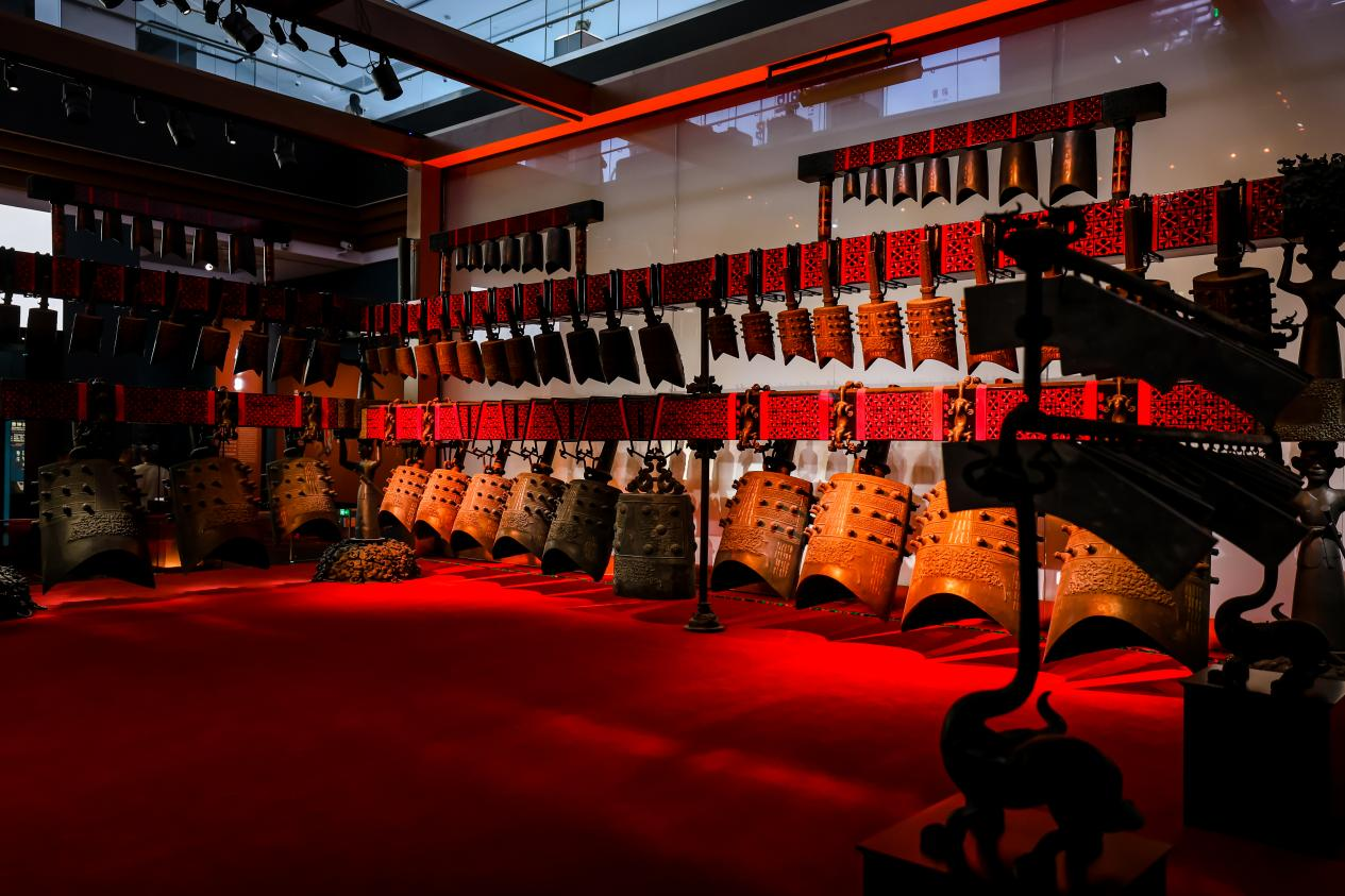 如果说炎帝文化是随州的“根”,那么青铜文明便是这座城的“骨”。随州博物馆内,盘龙盖罍与凤鸟盖罍组成的“青铜CP”圈粉无数。前者龙纹盘旋尽显王者霸气,后者凤羽灵动暗藏温婉气韵,一刚一柔间拆解着西周礼制的密码。而真正让礼乐共振的,当属曾侯乙编钟这座“青铜史诗”。六十五件青铜钟体层层叠架,青铜与木构交织成庄重的礼乐之器,钟身铸刻的铭文既是乐律图谱,更是上古科技的见证。