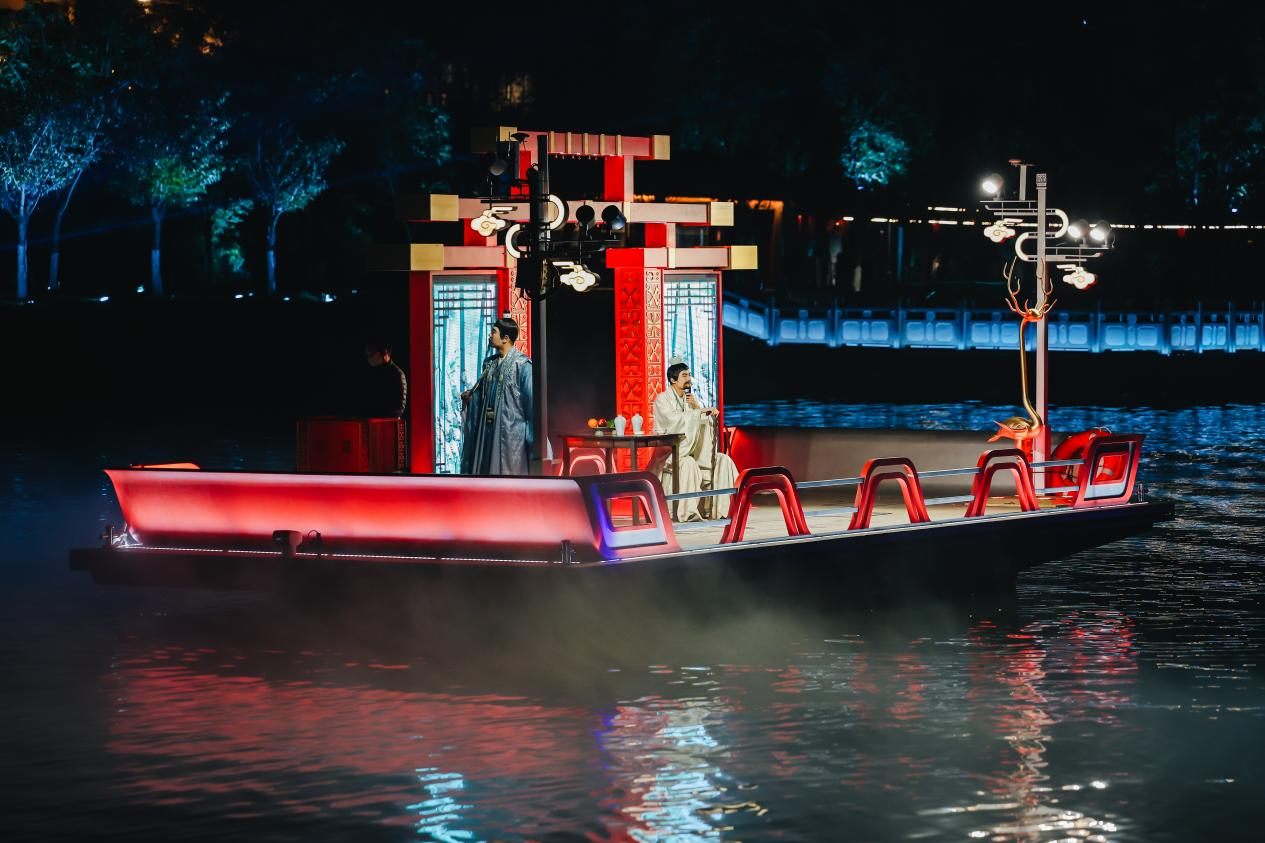 当暮色笼罩随州,白云湖的编钟码头游船又翻开文化新篇。360度敞篷船身让夜景尽收眼底,水幕投影将炎帝长歌、钟鸣天地的历史画面铺就湖面,岸边实景演出与水上光影交融,每一束光都在讲述随州的故事,每一段旋律都藏着白云湖的韵味。大V们闲坐游船,看光影随波流转,听礼乐与水声共鸣,这是随州独有的“文化+科技”盛宴。