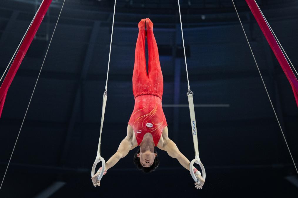 11月14日,湖南队选手张博恒在吊环比赛中。新华社记者 杜子璇 摄