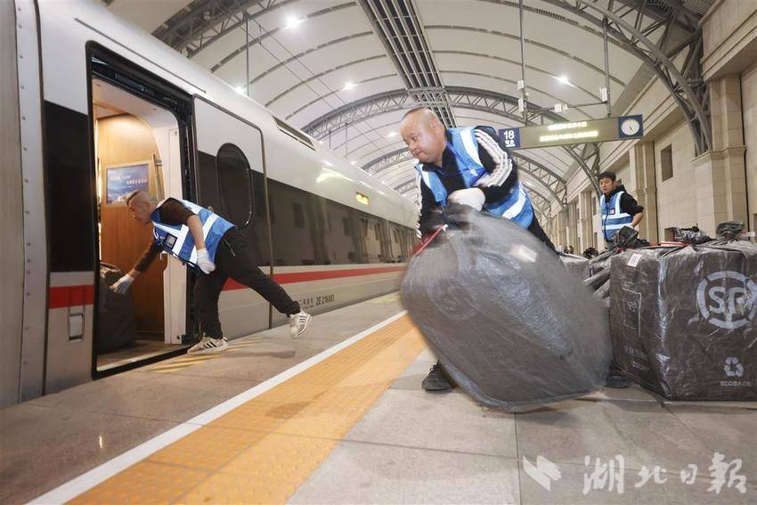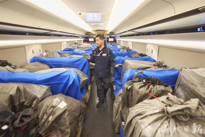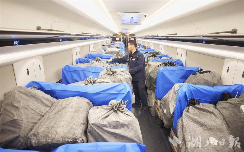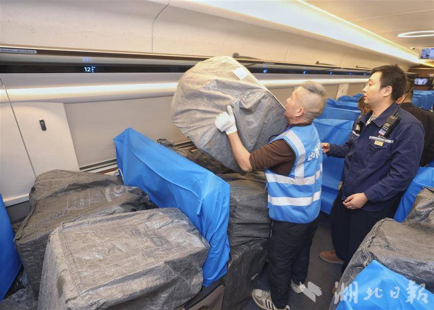11月15日凌晨,武汉与广州间首次利用整列动车组开展高铁快运批量运输工作,华中地区与粤港澳大湾区增添高铁物流新通道。当天凌晨5时58分,DJ892次列车载着10吨重的蜜桔、服装、电子产品、鲜花等湖北特色产品,从汉口火车站18站台缓缓驶出,沿京广高铁一路南下,将直抵广州白云站。