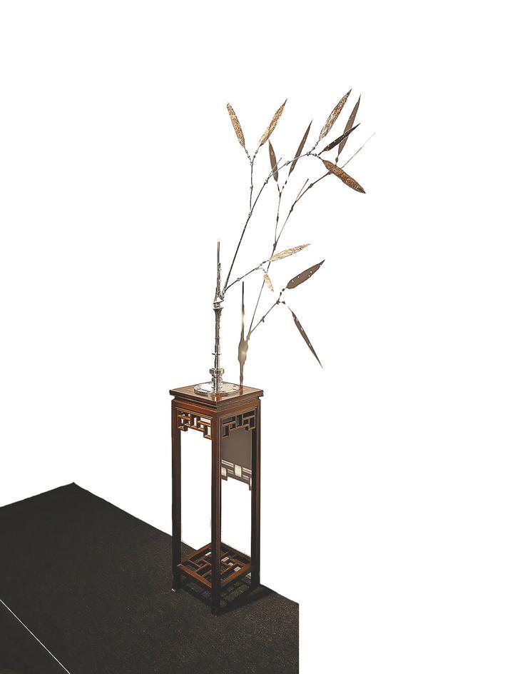 除了前面介绍的《千里江山》《山水谱》,还有许多作品都脱离了传统水墨的框架,聚焦于水墨精神的表达。雕塑艺术家史金淞创作的《未来诗学研究·竹谱》是一件特别的作品,他以传统中国画中的“竹谱”为线索,呈现出传统中象征君子风骨、清雅柔韧的翠竹形象。在灯光的映照下,竹枝的影子投射在墙壁上,传统的水墨元素被充满科技感和空间感的光影美学巧妙表达,别具意蕴。