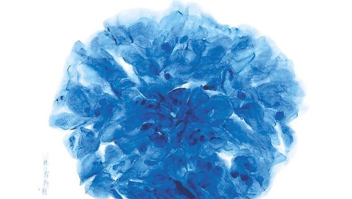 坚守传统的同时必须与时代审美接轨,这是湖北美术学院原院长徐勇民对水墨艺术的看法。在“时代·笔墨”展的现场,徐勇民向记者介绍了他的水墨作品《湛湛露斯》。这幅作品创作于2016年,题名取自《诗经》中的原句,是他的“大蓝花”系列作品之一。“所谓‘一花一世界’,看到这幅作品,能从微观的形态当中感受到更多世界跟宇宙的变化,我觉得这是中国文化给予我的一种启示。”