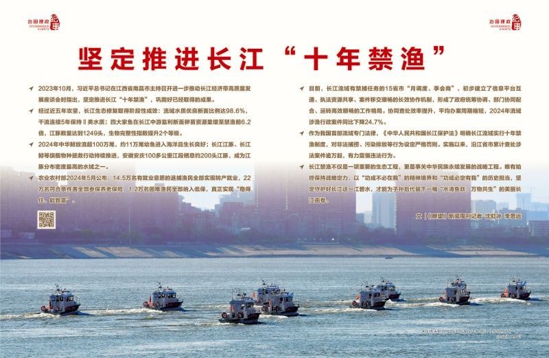 征程近半,成效初现。从昔日“无鱼之困”到如今“鱼跃之景”的生态转变,从传统“靠水吃水”到现代“护水养水”的理念革新,长江禁渔实践充分证明,生态保护与民生改善能够实现协同双赢,也为全球江河生态治理贡献了中国智慧和中国方案。