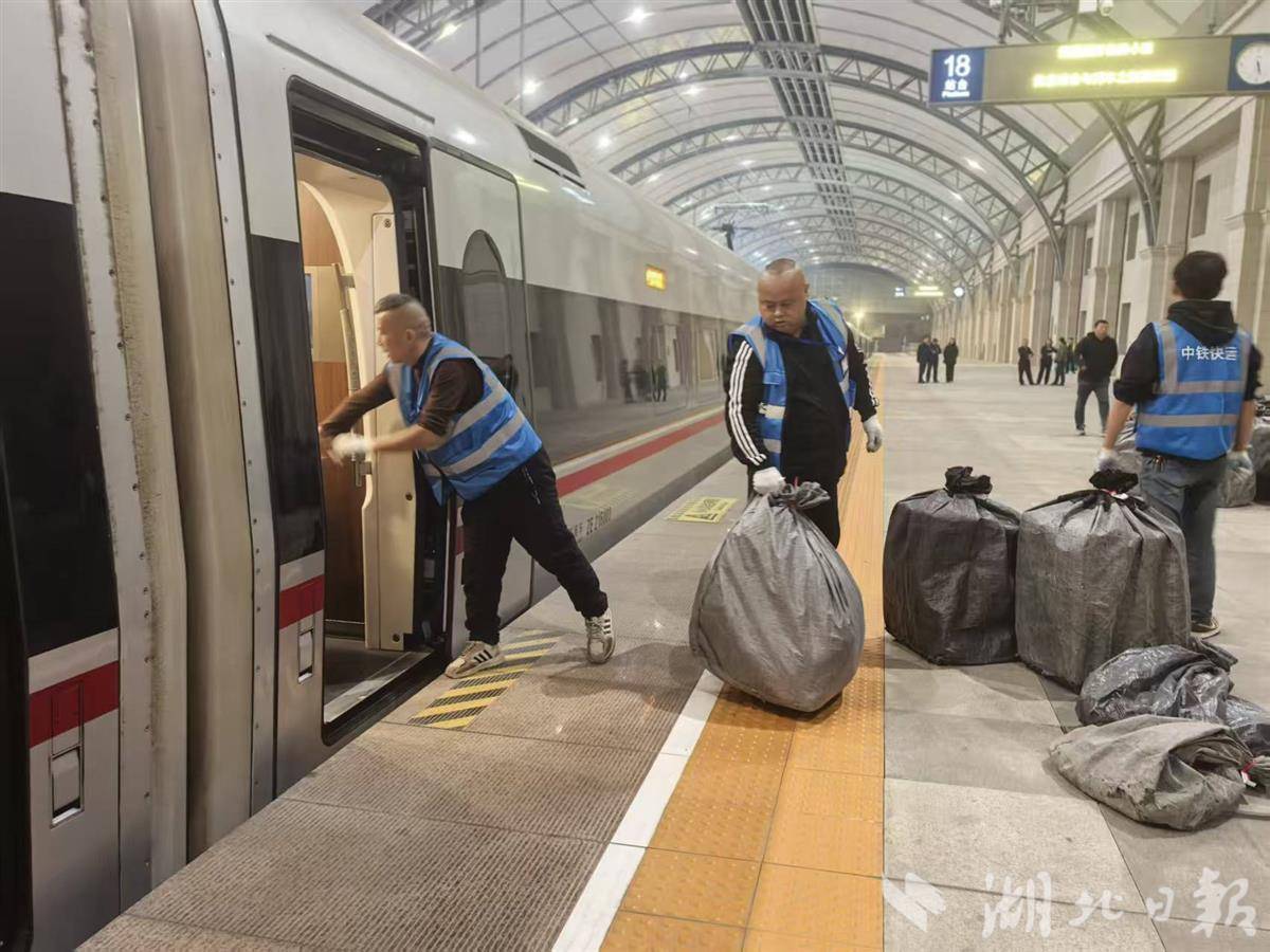 11月15日凌晨5时58分,夜色未褪,DJ892次列车载着10吨重的蜜桔、服装、电子产品、鲜花等湖北特色产品,从汉口火车站18站台缓缓驶出,沿京广高铁一路南下,将直抵广州白云站。