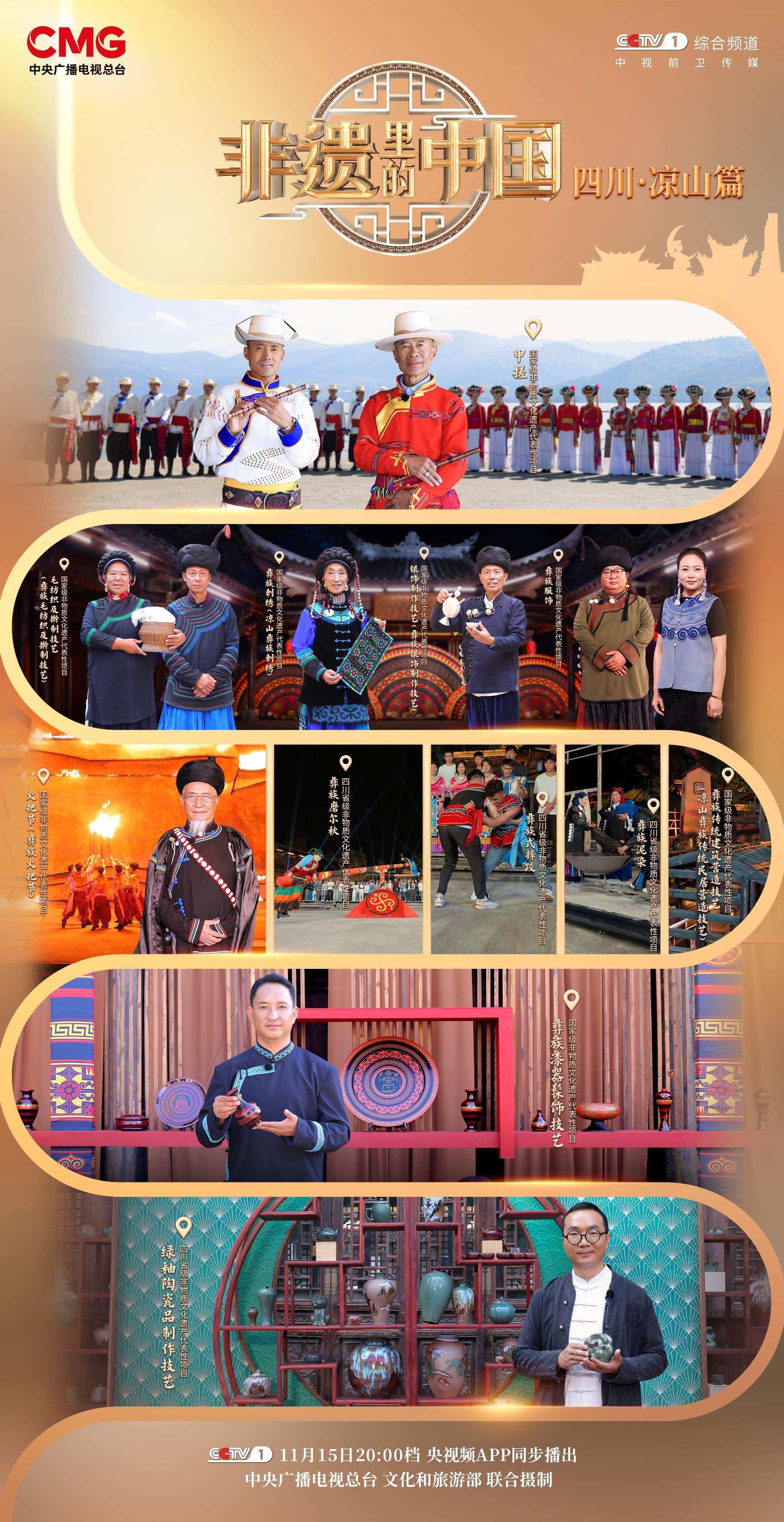 11月15日,大型文化节目《非遗里的中国》四川·凉山篇将在总台综合频道(CCTV-1)20:00档播出,央视频全网独家首播。让我们和《非遗里的中国》一起走进四川省凉山彝族自治州,探寻传统技艺的历史脉络,见证古老文化与现代生活的美好交融。