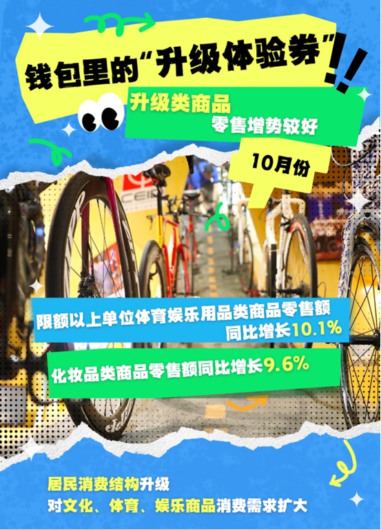 今年以来,各地区、各部门深入推进提振消费专项行动,加力扩围实施消费品以旧换新,大力发展数字消费和服务消费,扩大文体消费,推动消费潜力释放。11月14日,国新办举行新闻发布会,介绍2025年10月国民经济运行情况。一组海报,数览10月我国消费市场亮点,探寻钱包多样“打开方式”。