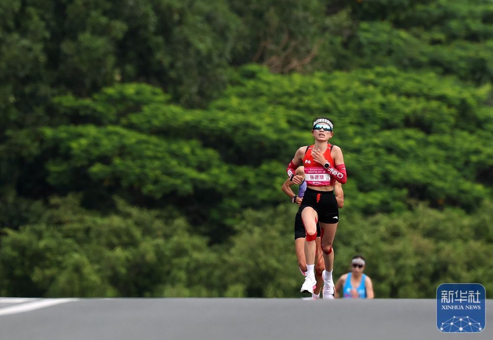 ↑ 云南队选手张德顺在比赛中(前)。最终,她夺得冠军。 新华社记者 毛思倩 摄