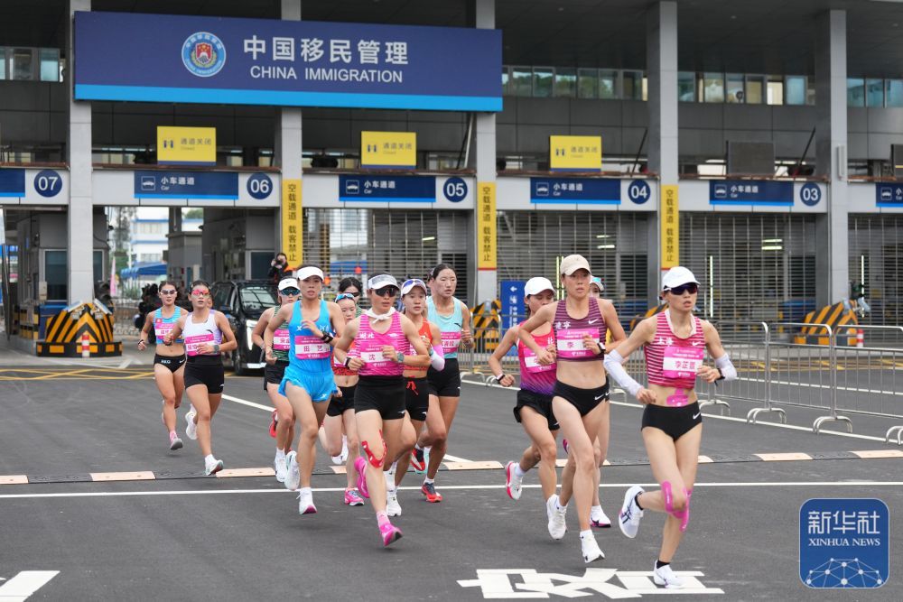 ↑ 参赛选手在比赛中经过深圳湾口岸进入香港。 新华社记者 丁增尼达 摄