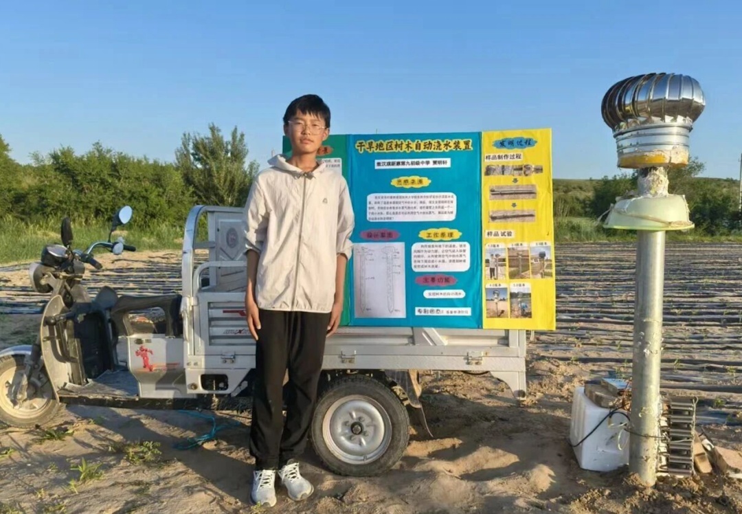 图为贾明轩发明的五代自动浇水装置。受访者供图