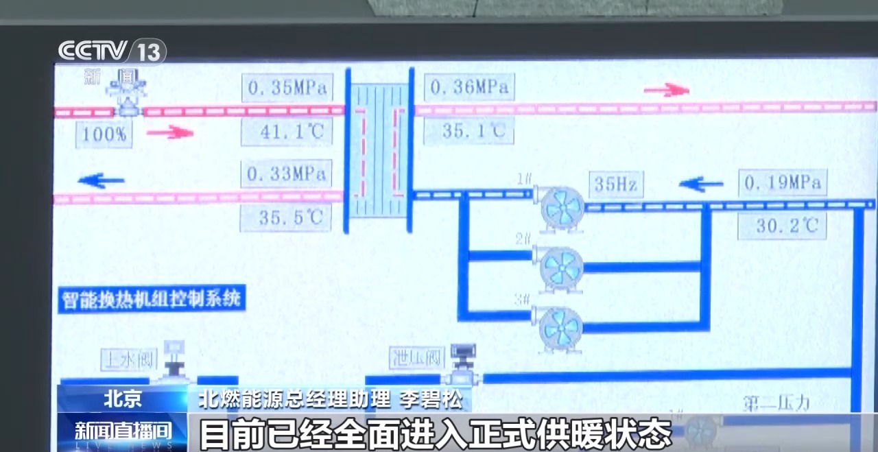 北燃能源总经理助理 李碧松:目前已经全面进入正式供暖状态,水温也已提升,现场人员已加大了巡检频率。为保障整个供暖季的平稳,也启动了全面的应急保障工作,现场人员、客服人员还有调度人员已进入24小时的值守状态。
