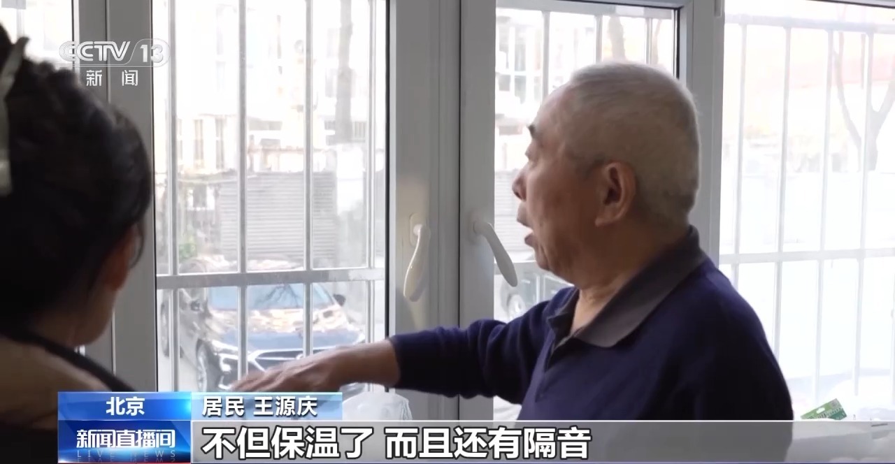居民 王源庆:原来是一个单层玻璃,推拉的,它都要透风的,现在改成双层玻璃了之后非常严实,不但保温了,而且还有隔音,各方面效果都特别好。