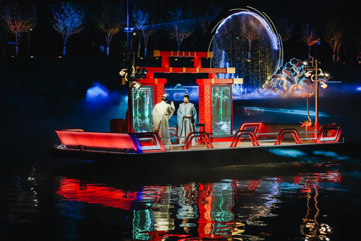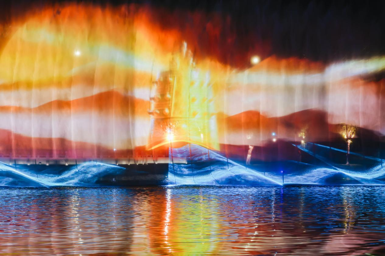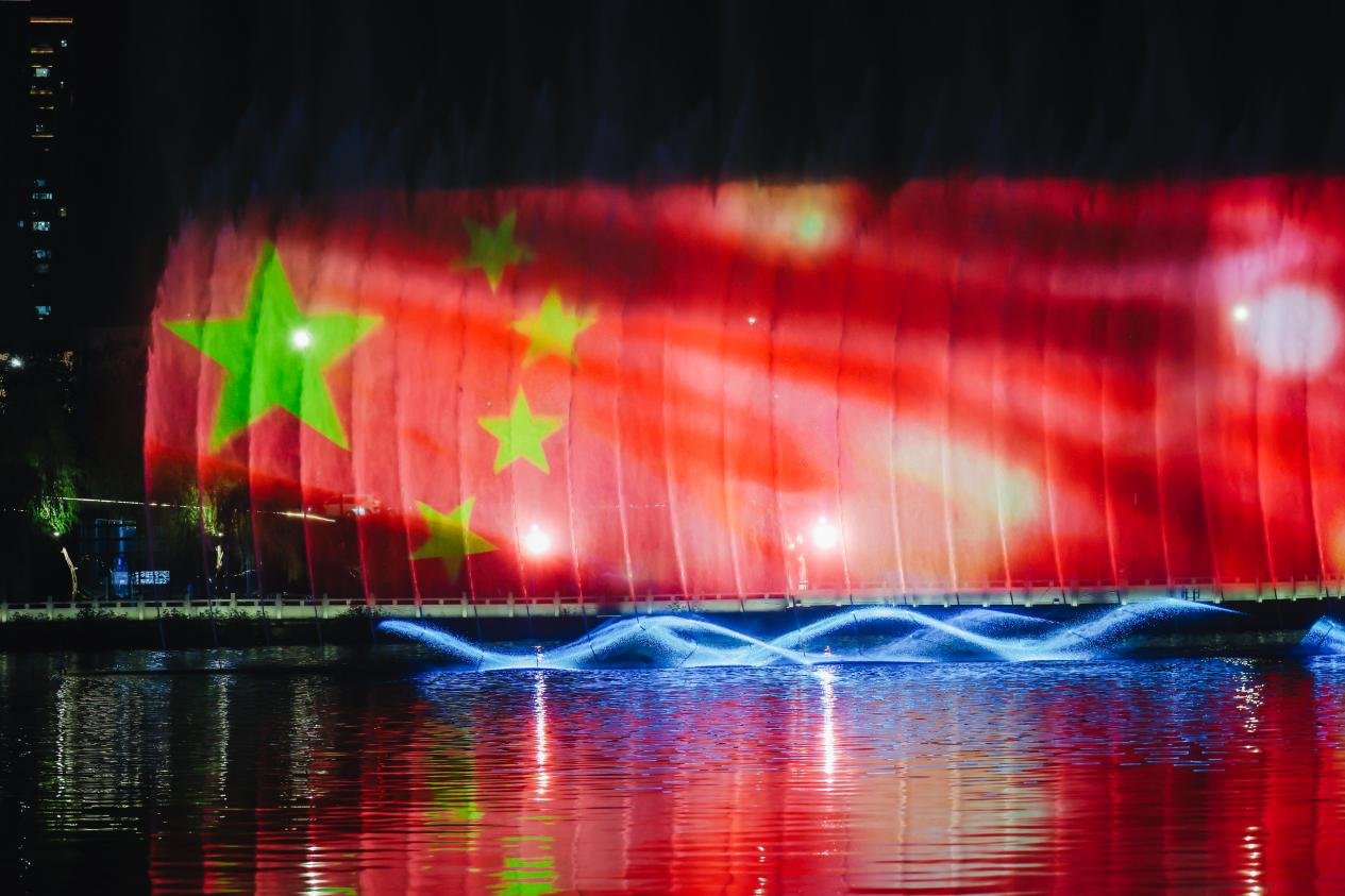 游船平稳向前,“时代随想”的红色基调愈发鲜明。当巨幅五星红旗在水幕上冉冉升起,旗面的金辉与岸边的红色灯光交相辉映,“五星红旗”的光影表演瞬间点燃全场。“太燃了!”不知是谁先喊出一声,掌声与欢呼声瞬间响彻湖面。这面红旗带来的震撼,是刻在每个中国人骨子里的DNA。