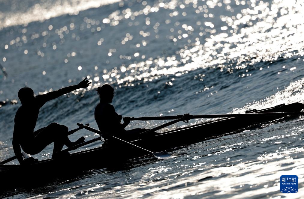 11月15日,辽宁队选手王思璇(右)和孙满(左)在混合双人双桨计时赛中。