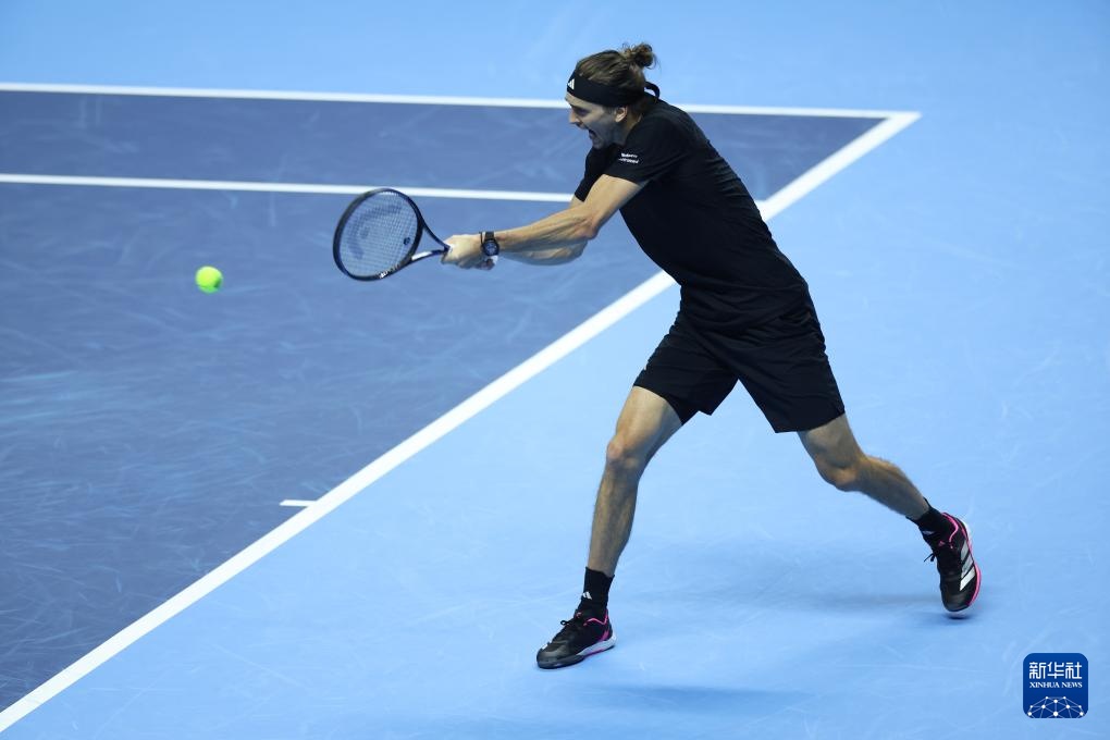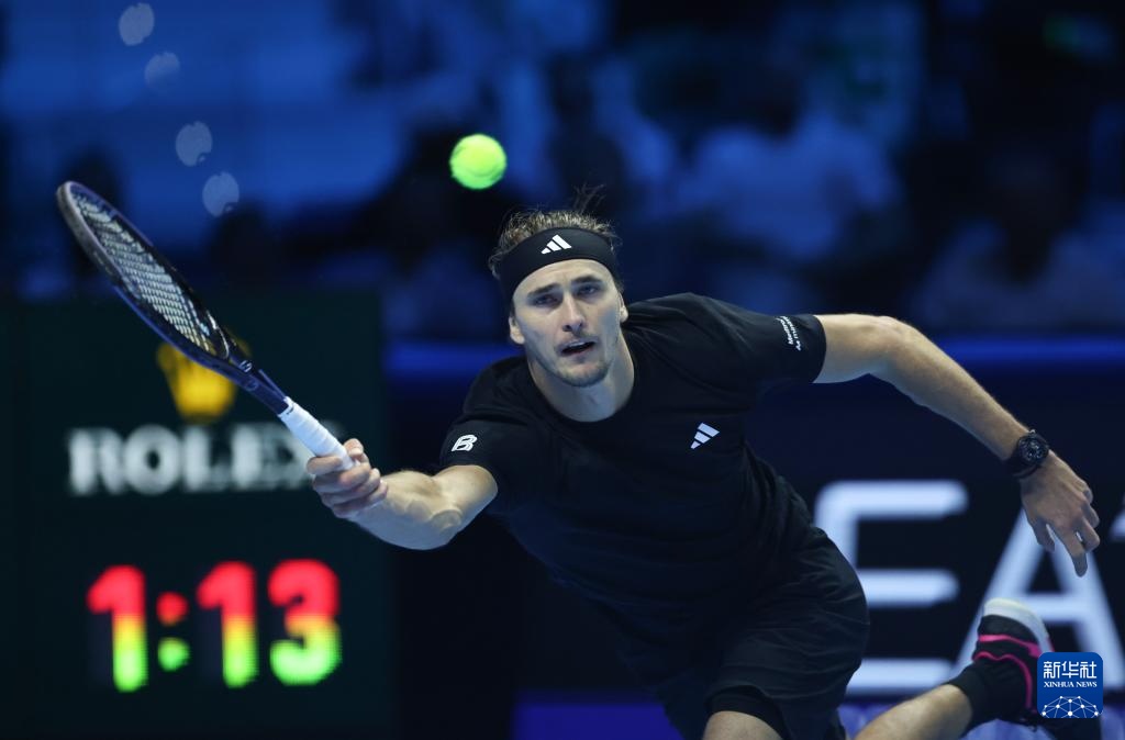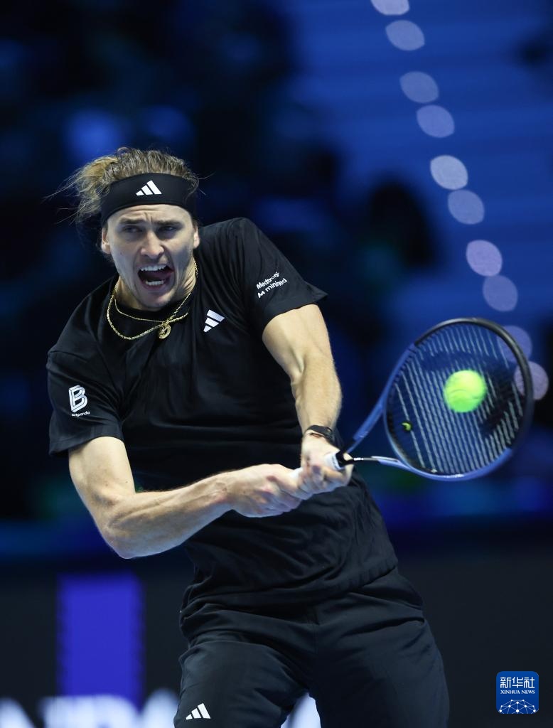11月14日,德国选手兹韦列夫在比赛中回球。