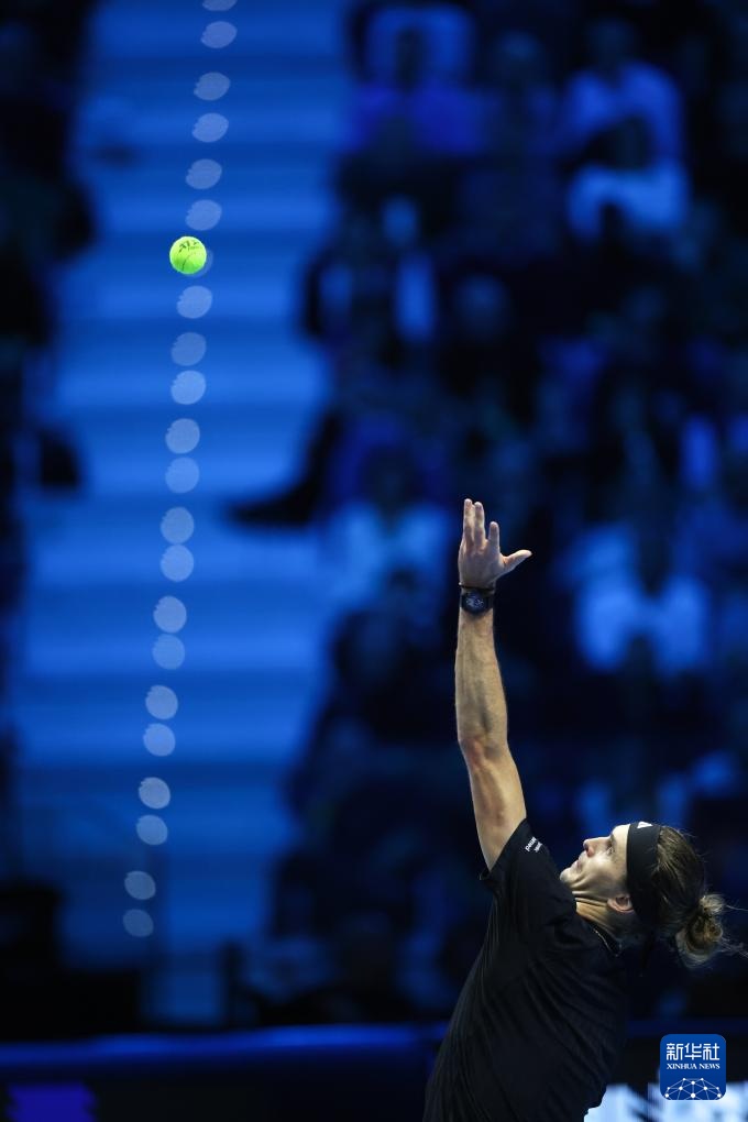 11月14日,德国选手兹韦列夫在比赛中发球。