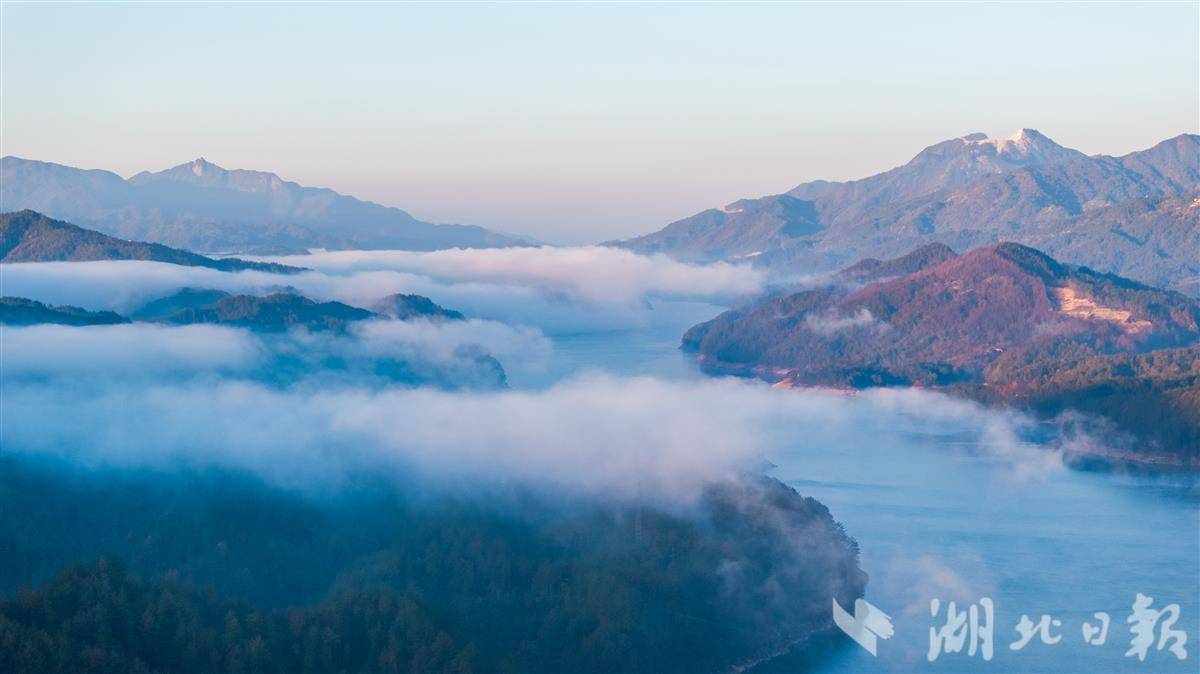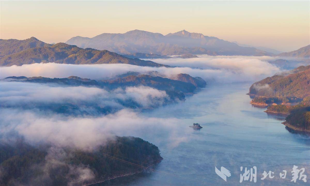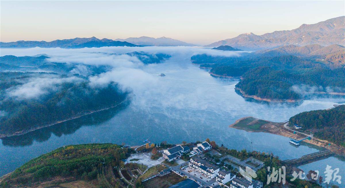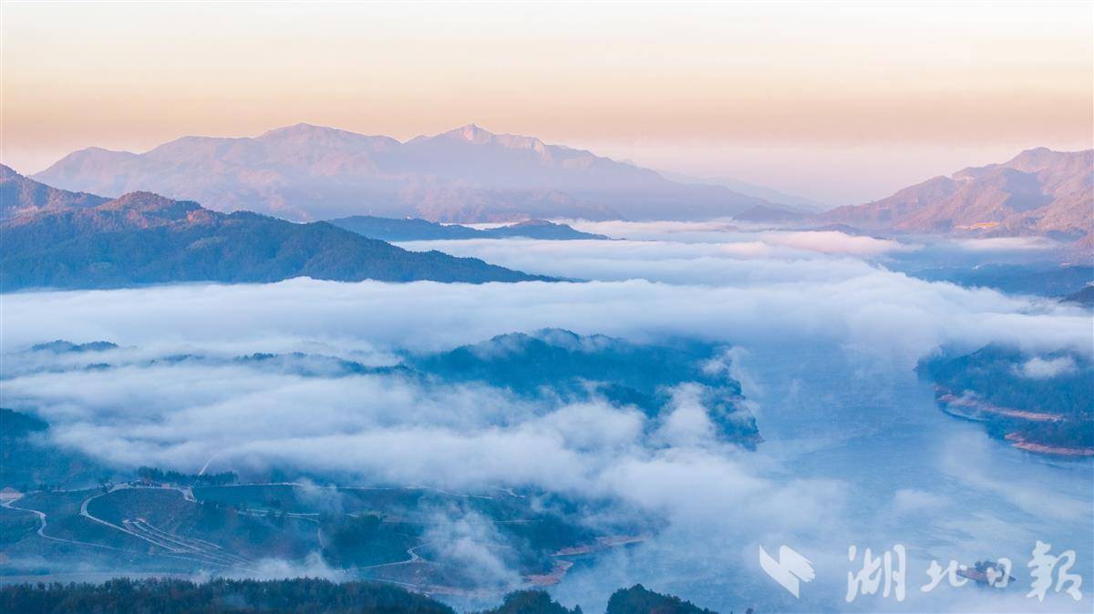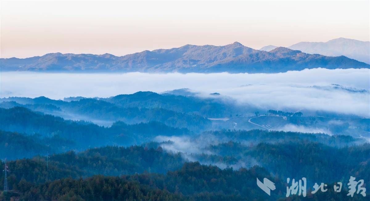 11月14日,大别山腹地罗田县云雾缭绕,冬日韵味尽显,村落点缀其间,与山水云雾构成一幅绝美画卷。