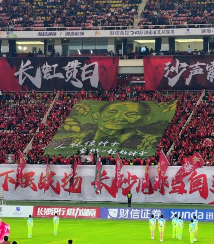 11月14日晚,湖南“湘超”迎来第十轮的比赛,长沙主场迎战益阳。在比赛开始前的暖场阶段,贺龙体育场的长沙球迷助威团看台,一幅巨大的TIFO(可覆盖看台的大型横幅或拼图)徐徐展开,上面有袁隆平院士的画像还有他曾说的那句话——“人就像种子,要做粒好种子”。有球迷表示:“您让中国人的饭碗端得更牢,我们想念您。”