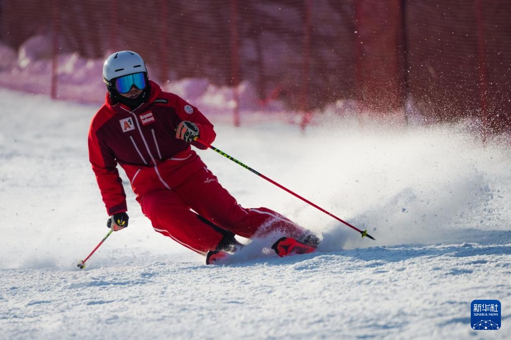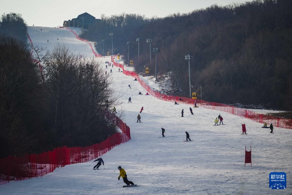 11月15日,滑雪爱好者在位于吉林省吉林市的中旅松花湖度假区滑雪。