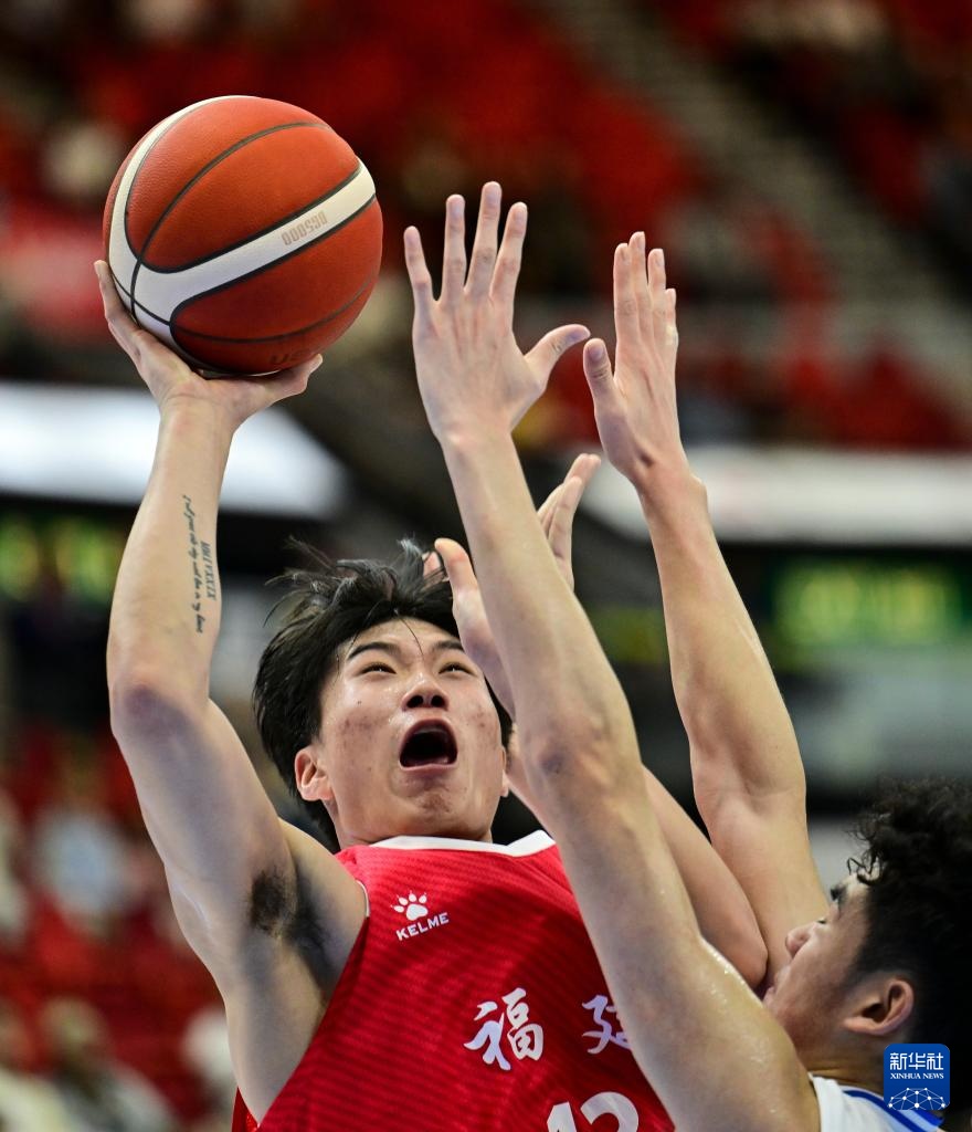 11月15日,福建队球员王文涛(左)在比赛中上篮。