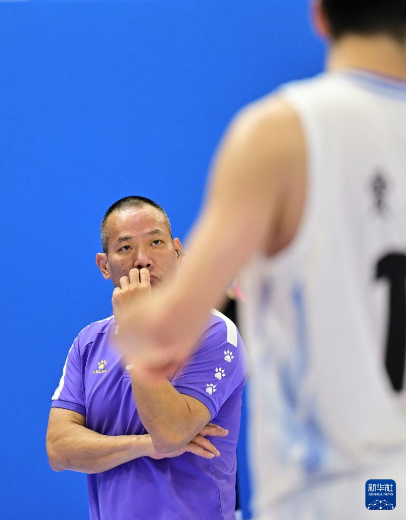 11月15日,福建队主教练沈小勇(左)在比赛中观战。