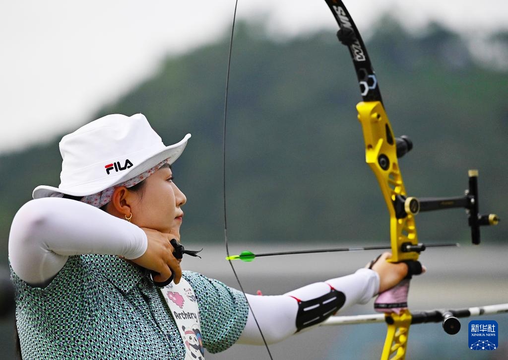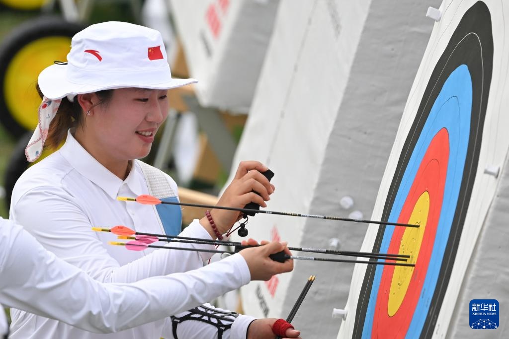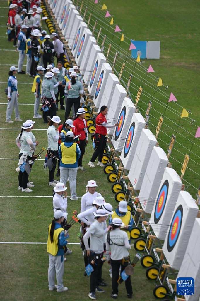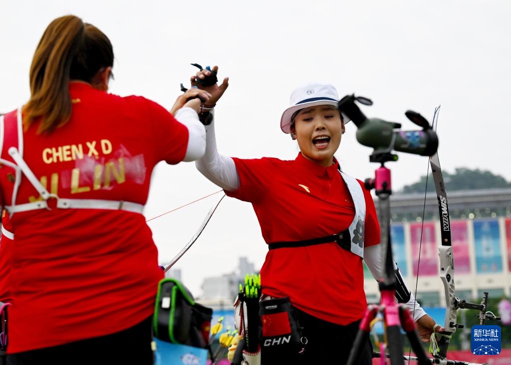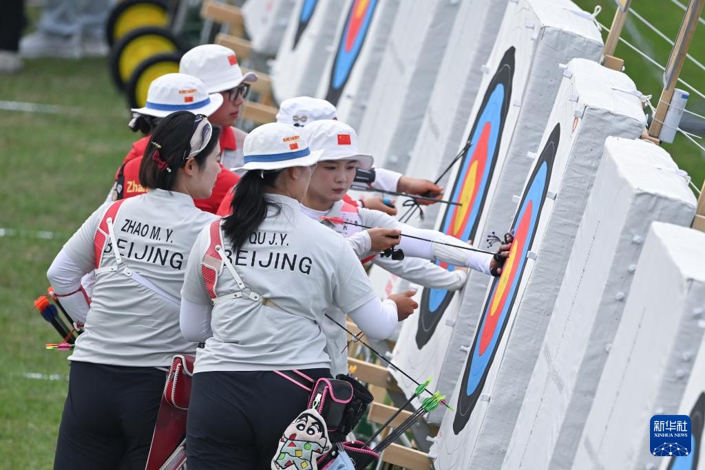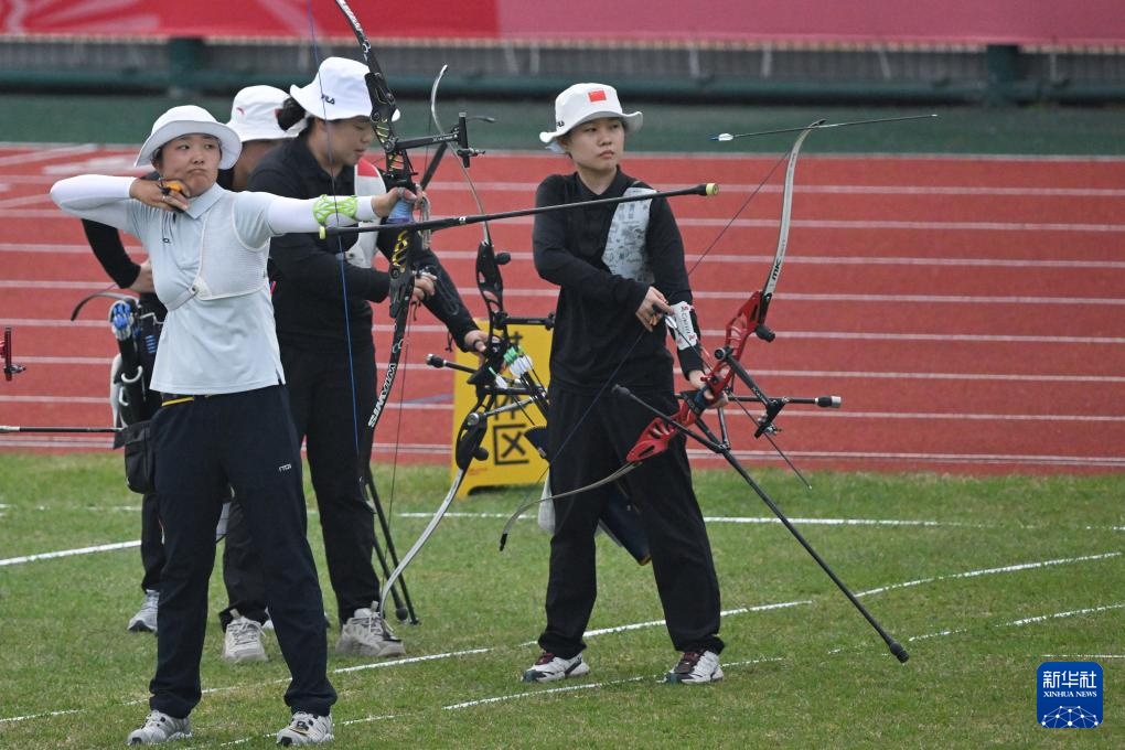 当日,第十五届全国运动会女子反曲弓团体1/8淘汰赛在深圳举行。
