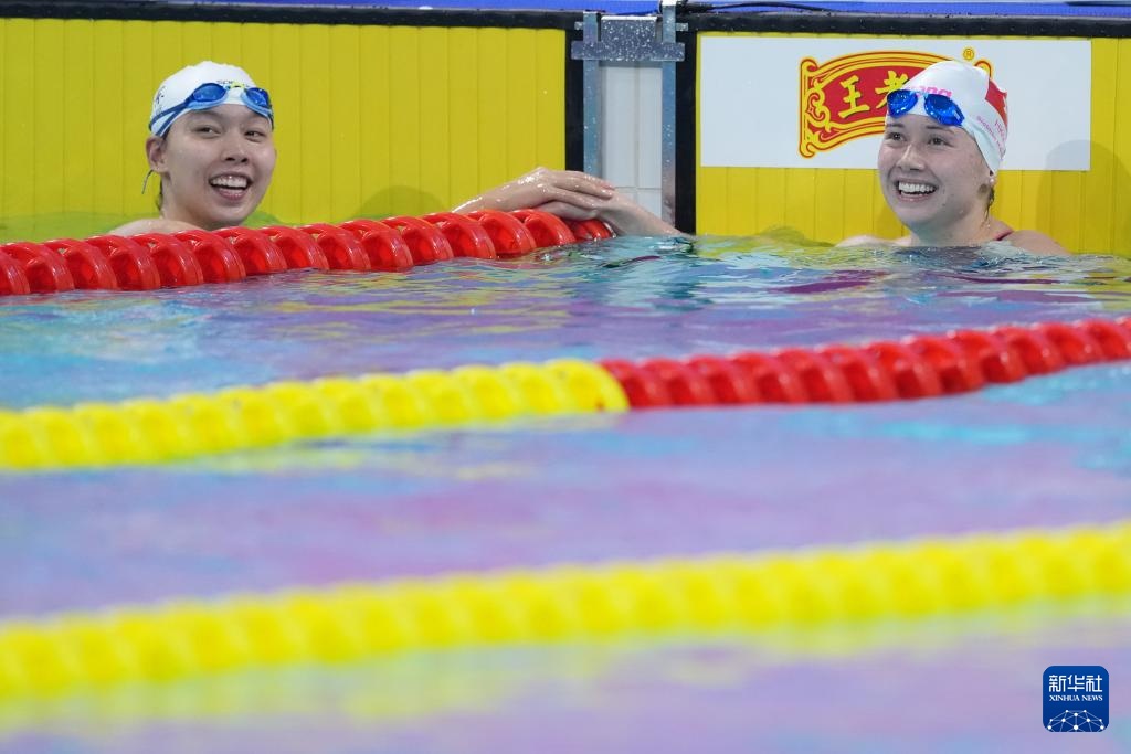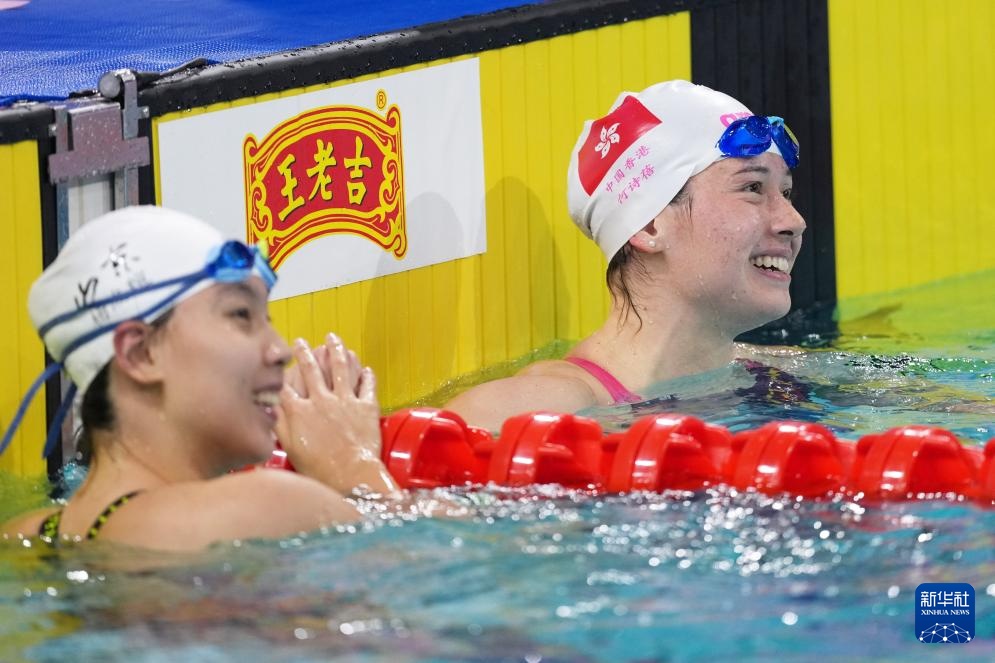 11月15日,香港队选手何诗蓓(右)在比赛后。她获得冠军。